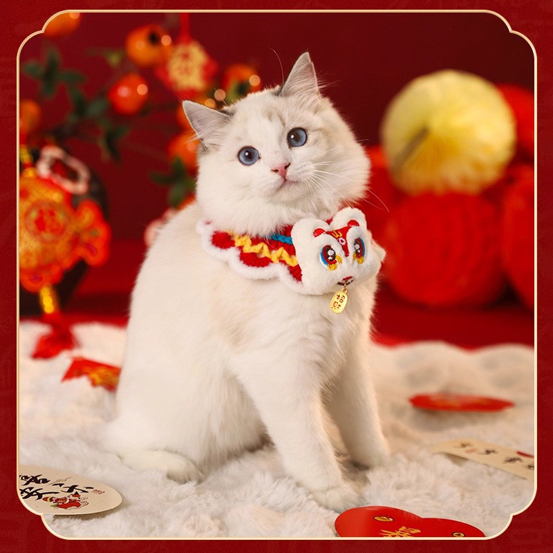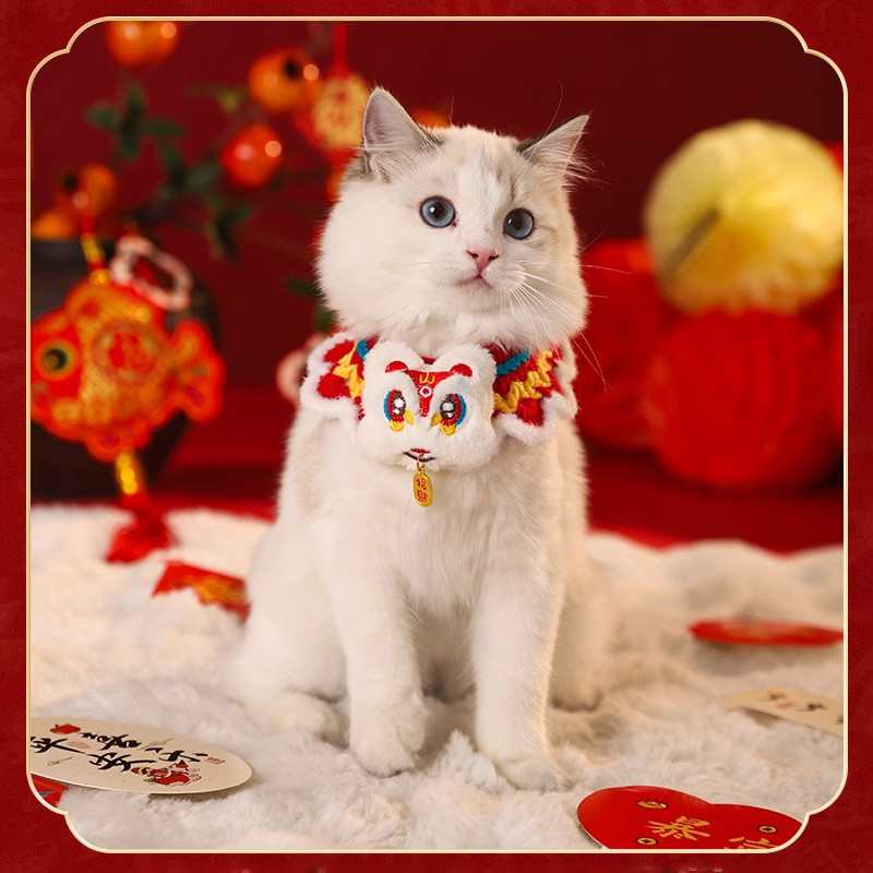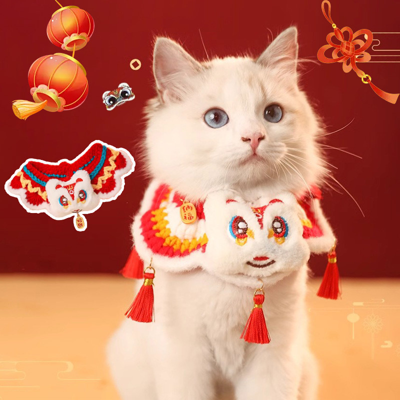ตรุษจีน ผ้าพันคอ สําหรับสัตว์เลี้ยง ปลอกคอแมวและสุนัข ปลอกคอสัตว์เลี้ยง ประดับโบว์ สําหรับสัตว์เลี้ยง สุนัข แมว