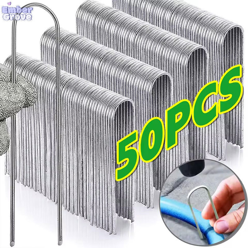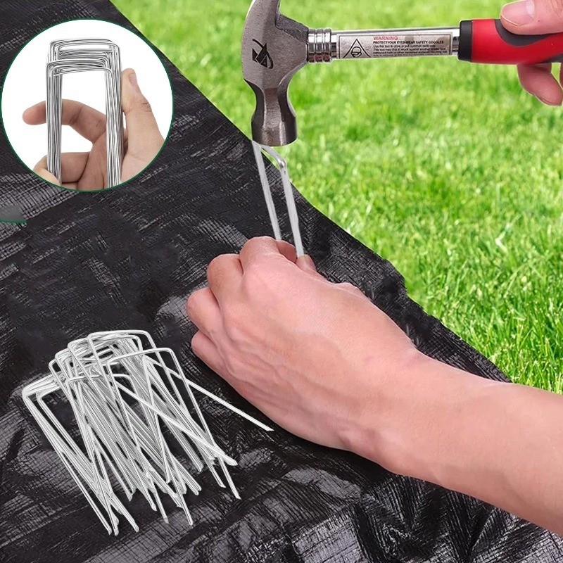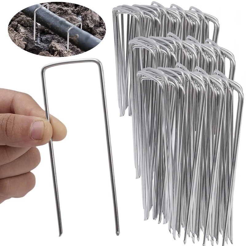 10/30/50 ชิ้น ลวดเย็บกระดาษรูปตัว U จำนวน / หมุดปักดินสำหรับปักสวนแบบชุบสังกะสี / ตะปูยึดผ้ากันวัชพืชแบบยึดพื้น