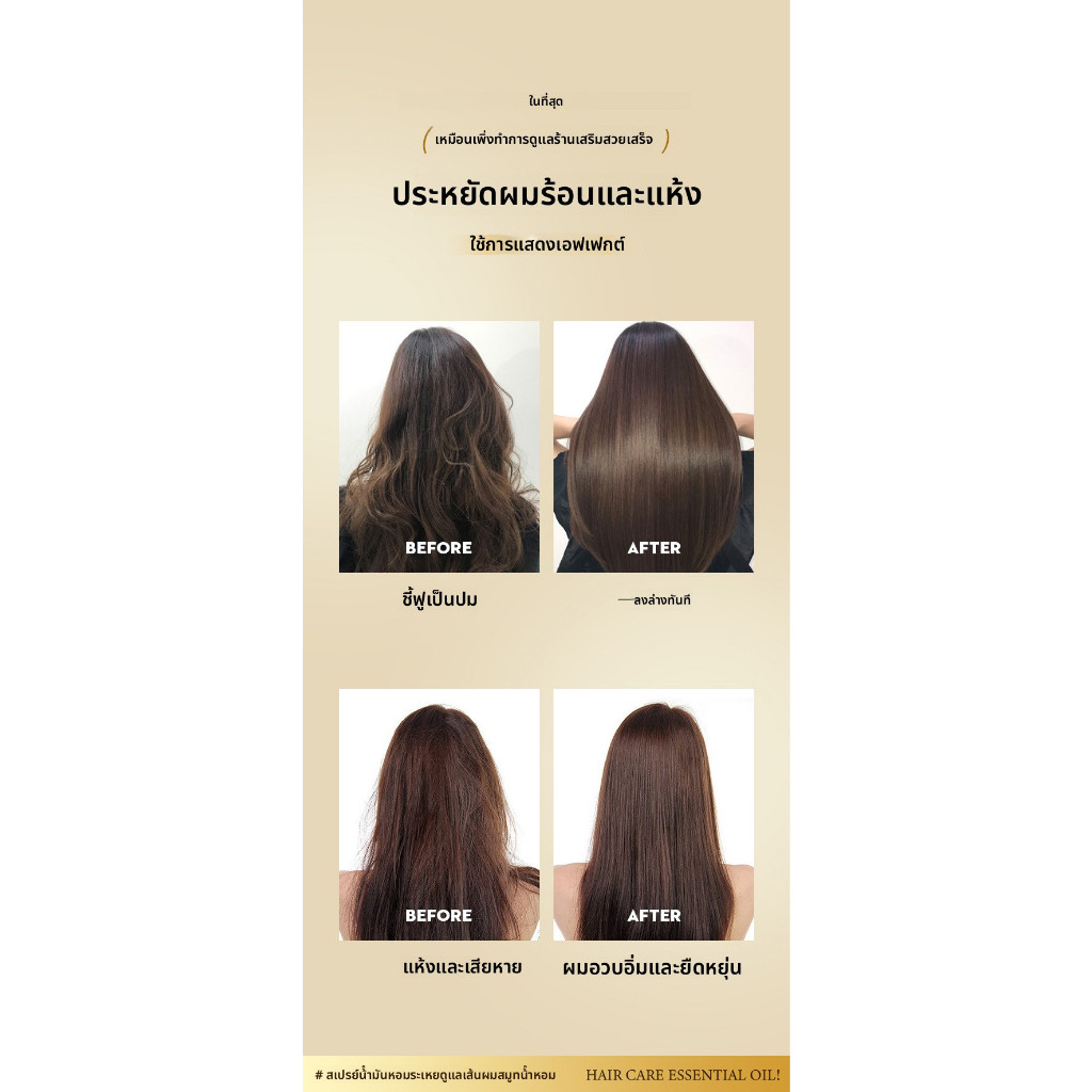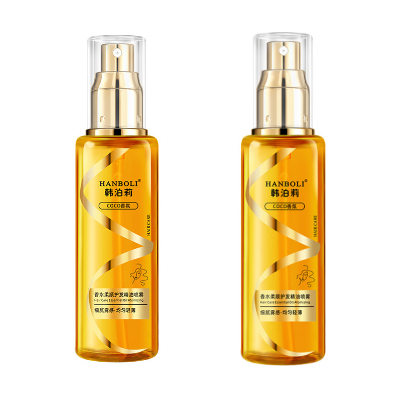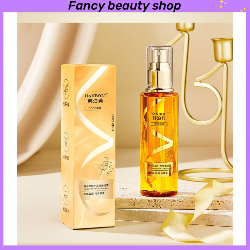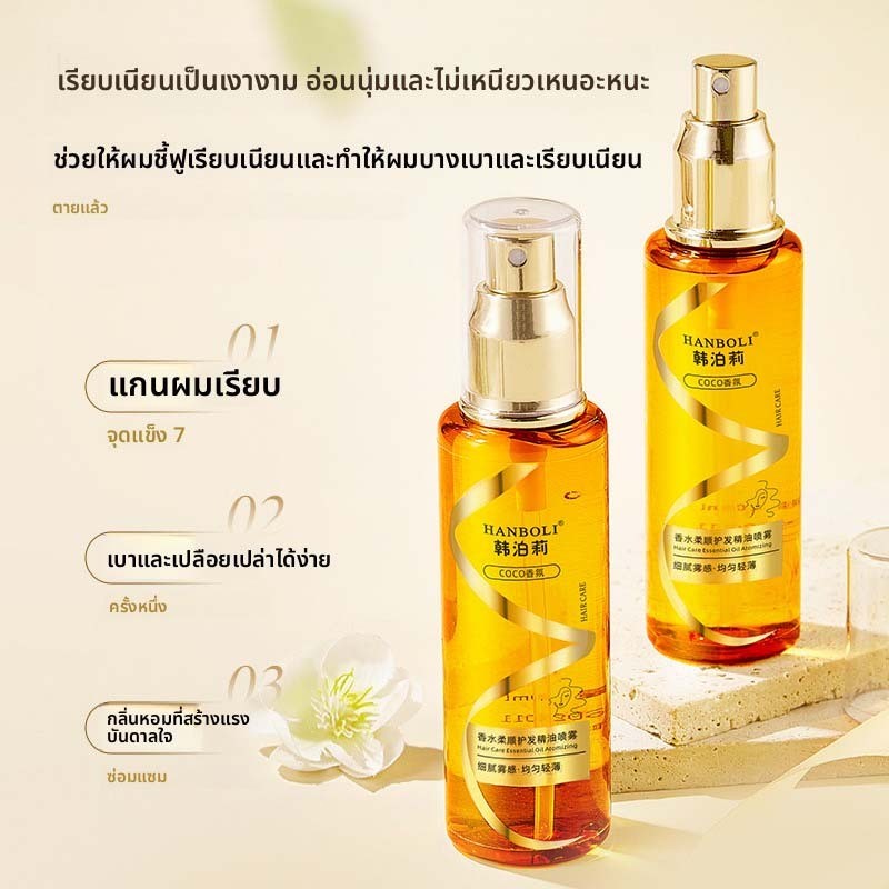 HANBOLI สเปรย์น้ำมันหมักผมน้ำหอม ฟื้นฟูผมเสียจากการย้อม-ดัด ผมลื่นสลวยนุ่มสวยฟู ควบคุมผมฟูยาวนาน กลิ่นหอมทนนาน 100ml