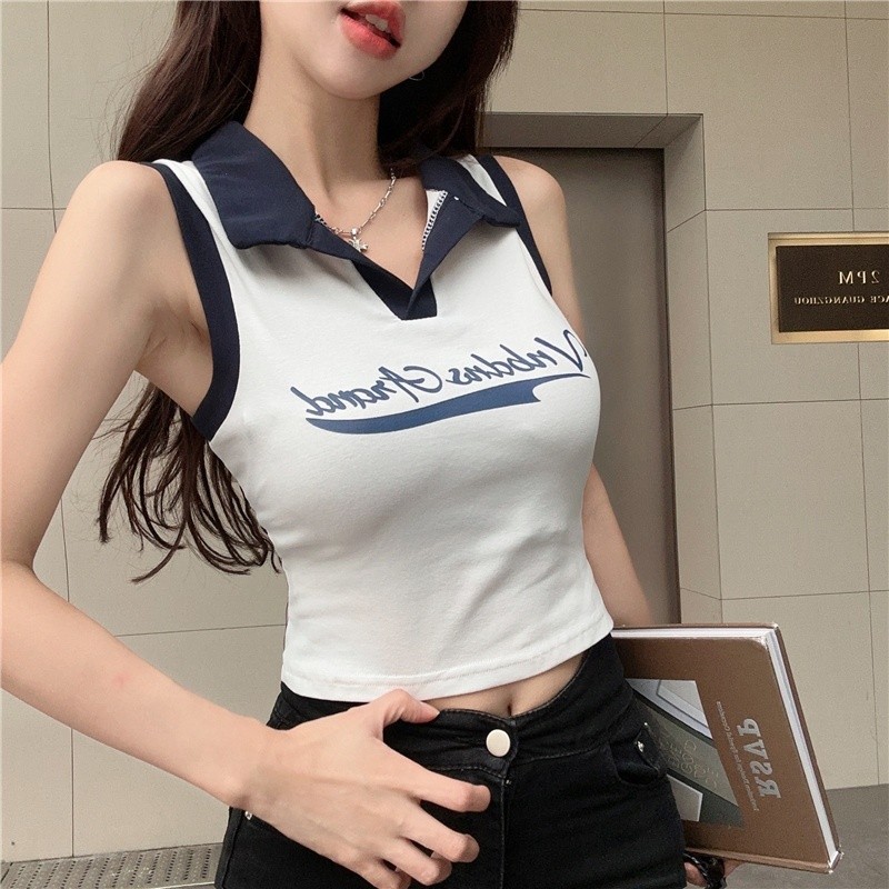 Elves✨พร้อมส่ง✨ เสื้อกล้ามไหมพรมคอปก สามสี เท่ๆมินิมอล ~M1932~