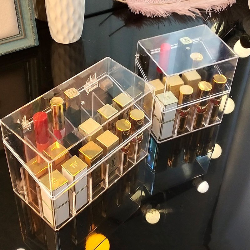 ส่งด่วน ชั้นวางลิปสติกอะคริลิก กล่องเก็บลิปสติกป้องกันฝุ่น ฝาปิด เก็บลิปสติก แท่นวางเก็บเครื่องสำอางและใส่เครื่องประดับ