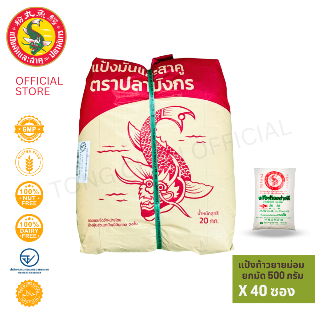 40 ซอง แป้งท้าวยายม่อม ตราปลามังกร 1 มัดมี40 ซอง ซองละ500กรัม เชือกเขียว