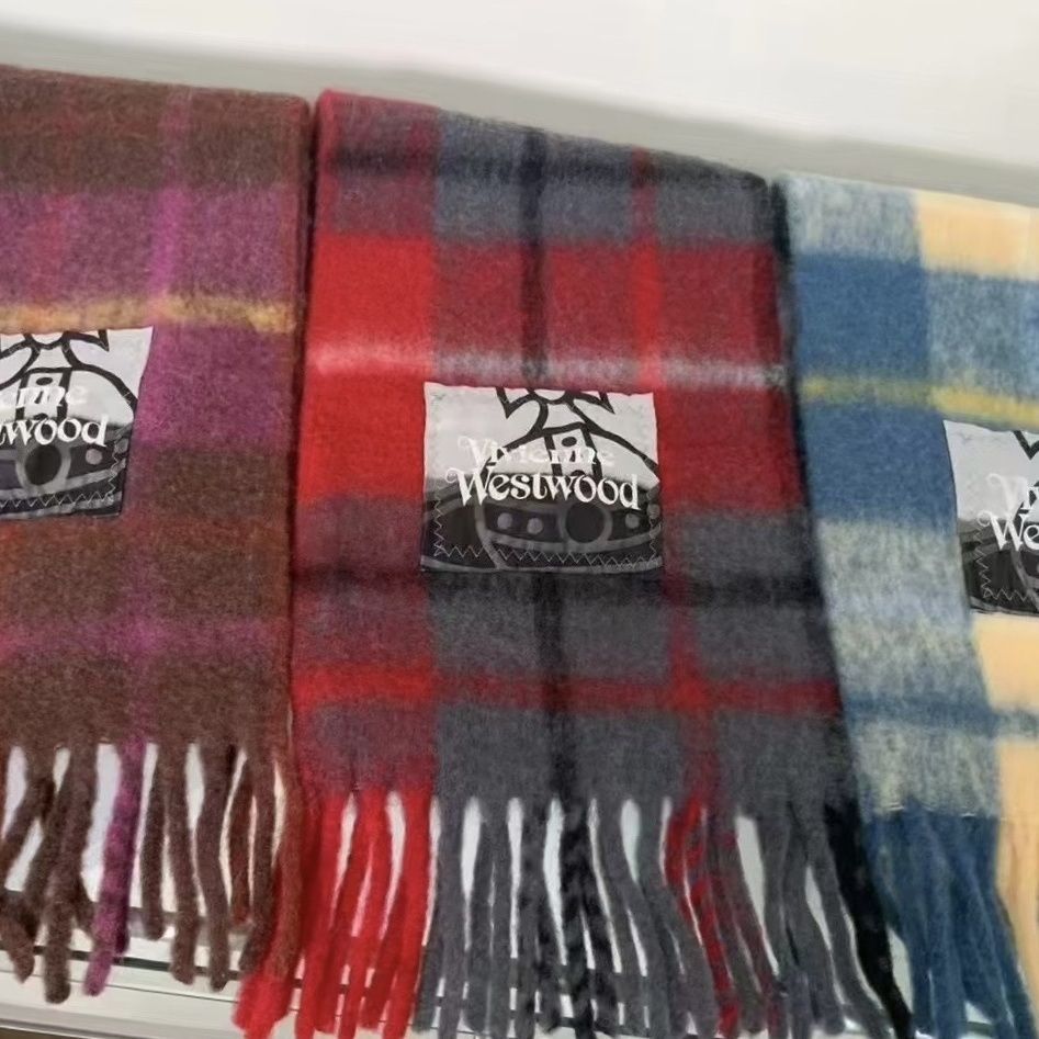 ผ้าพันคอลายสก๊อต Vivienne Westwood สำหรับฤดูใบไม้ร่วงและฤดูหนาว สไตล์หรูหรา