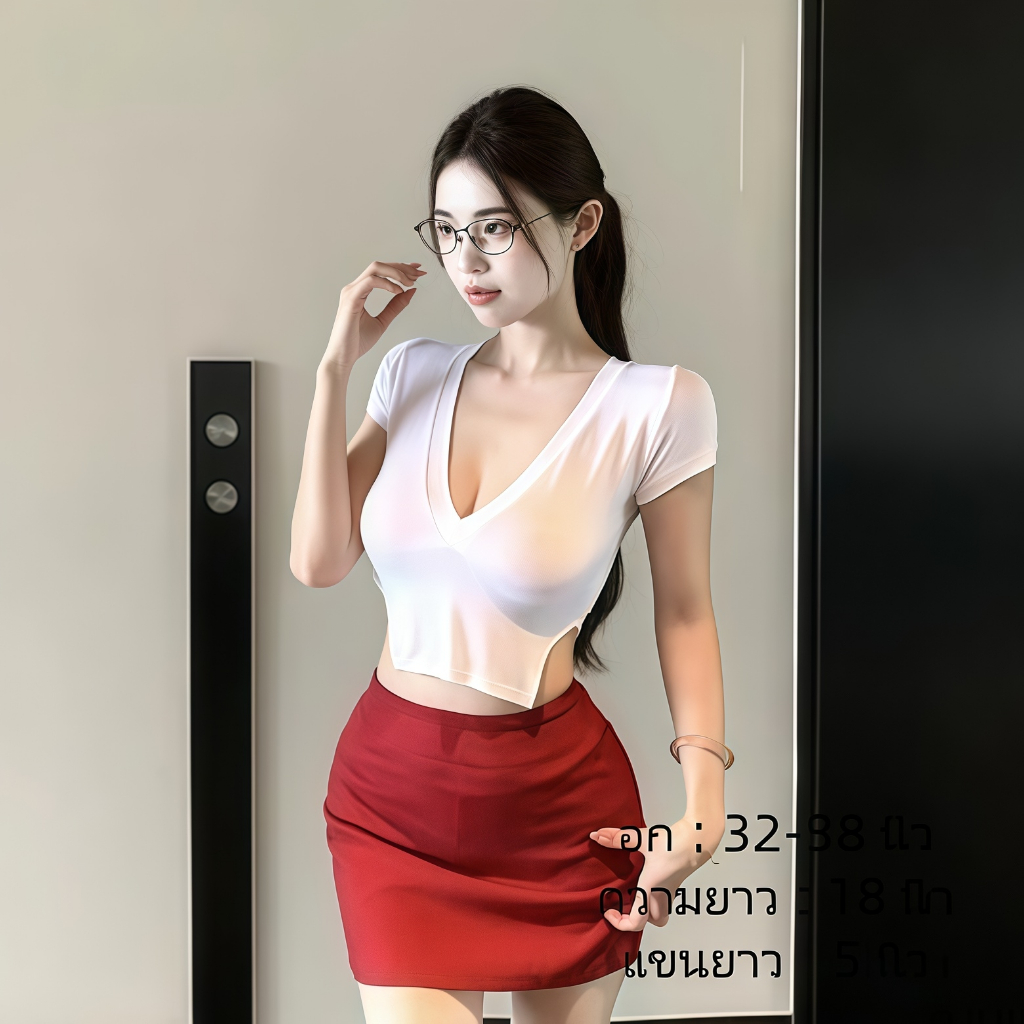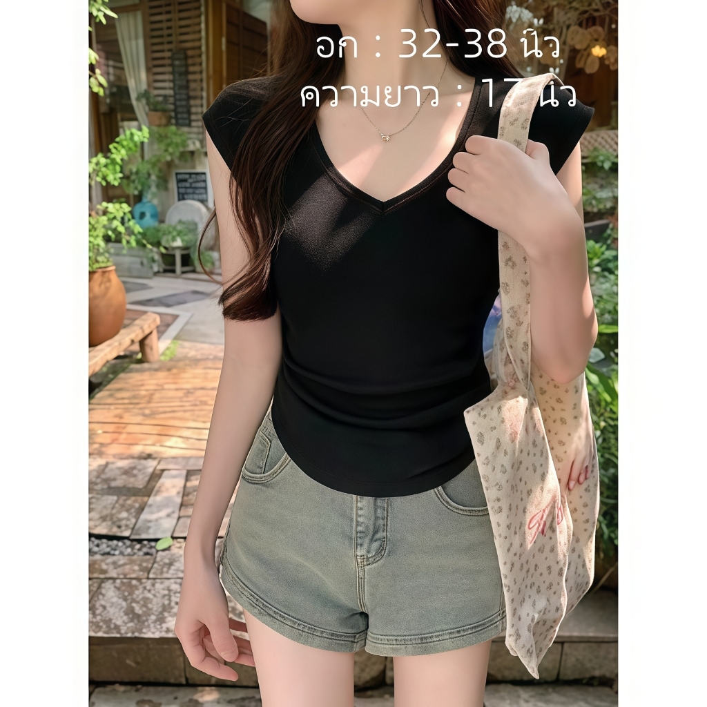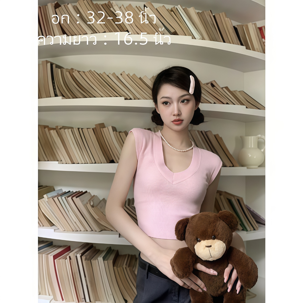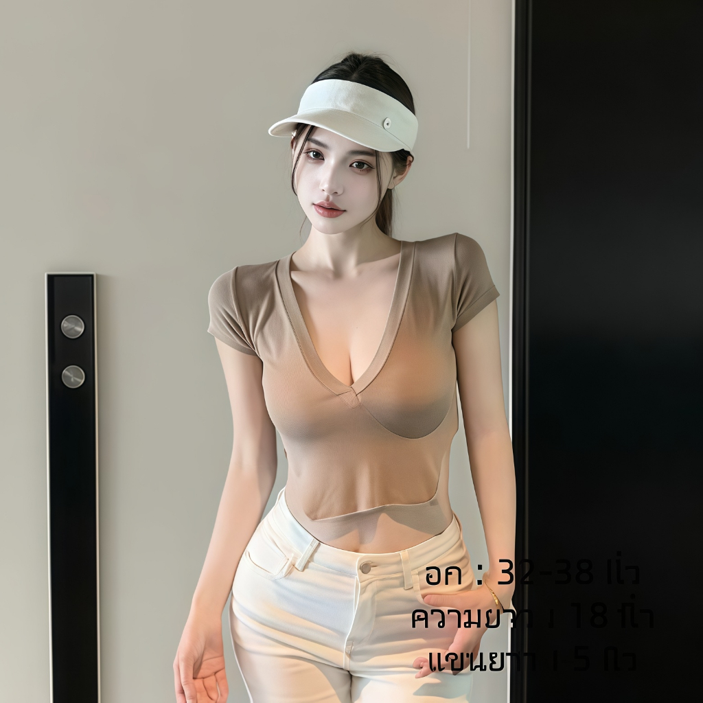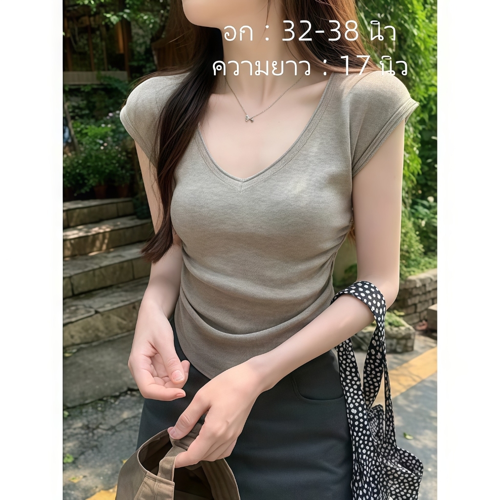 เสื้อคอวีไหมพรม แขนสั้นครอป ยืดพอดีใส่ง่าย สไตล์เกาหลี หรูหรา เสื้อแฟชั่นผู้หญิง