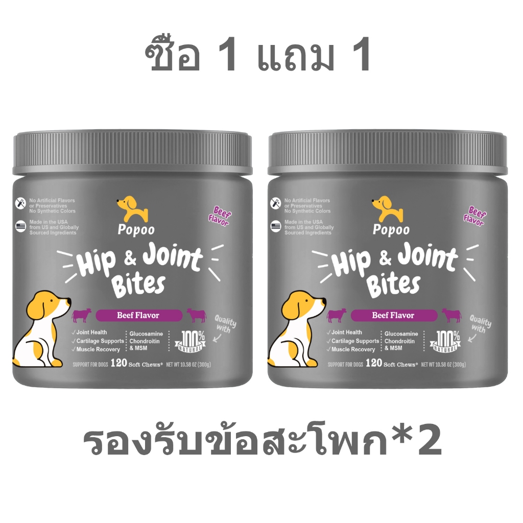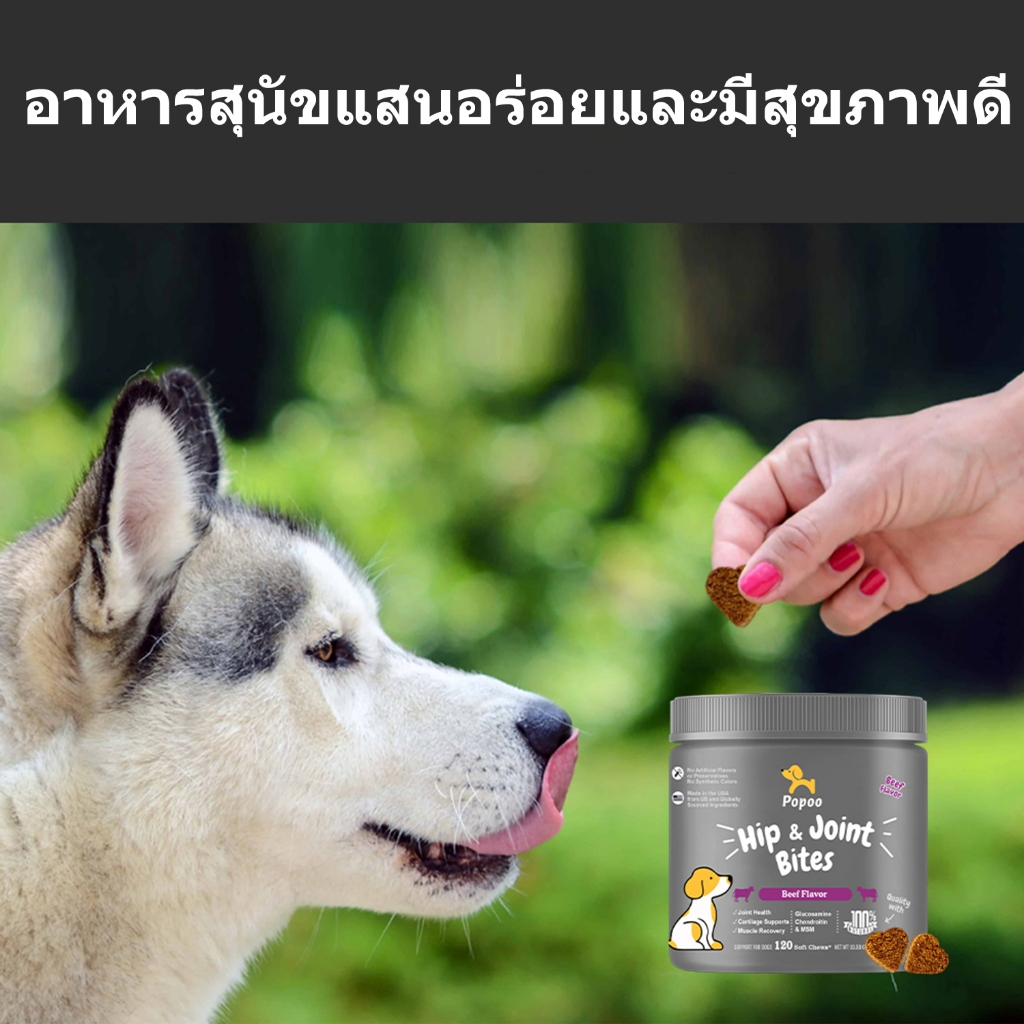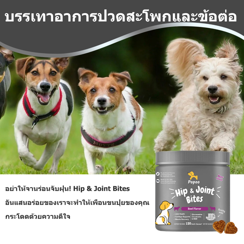 Popoo อาหารเสริมสุนัข บำรุงสะโพกและข้อต่อ Dog Hip & Joint Mobility Bites ขนมสุนัข อาหารสุนัข 120 ชิ้น
