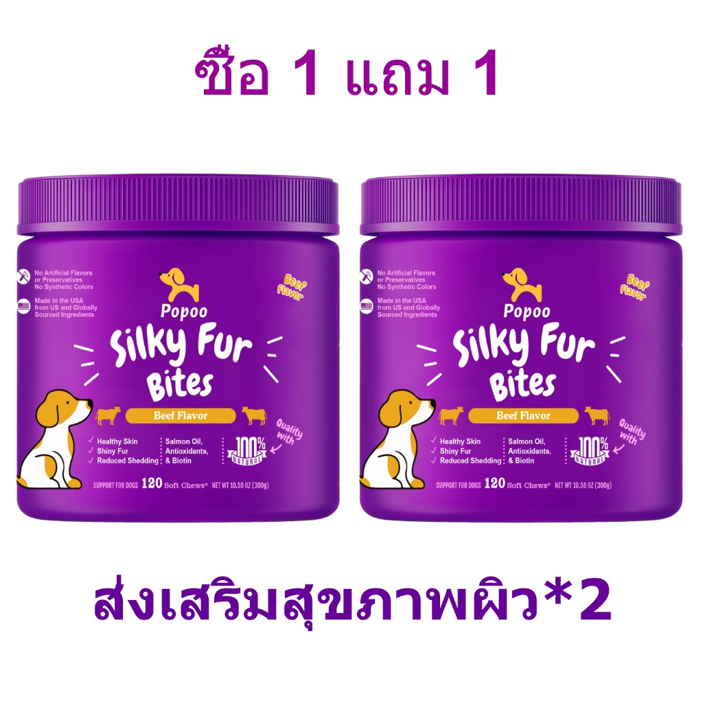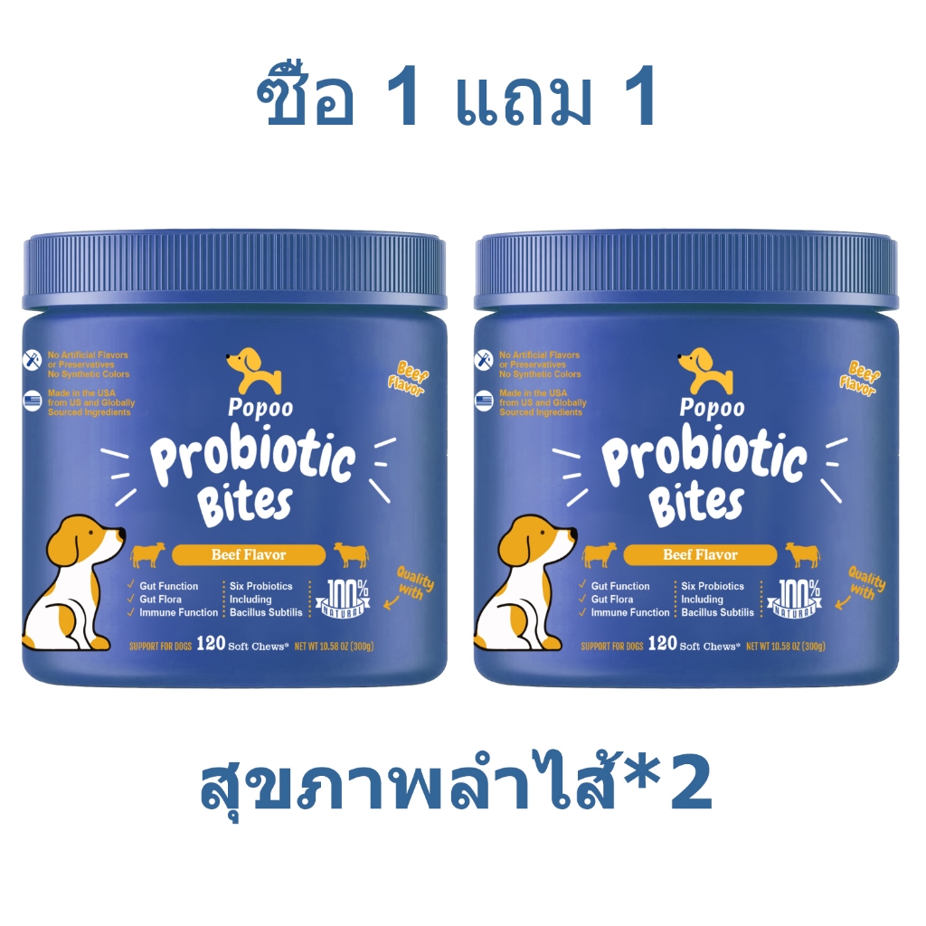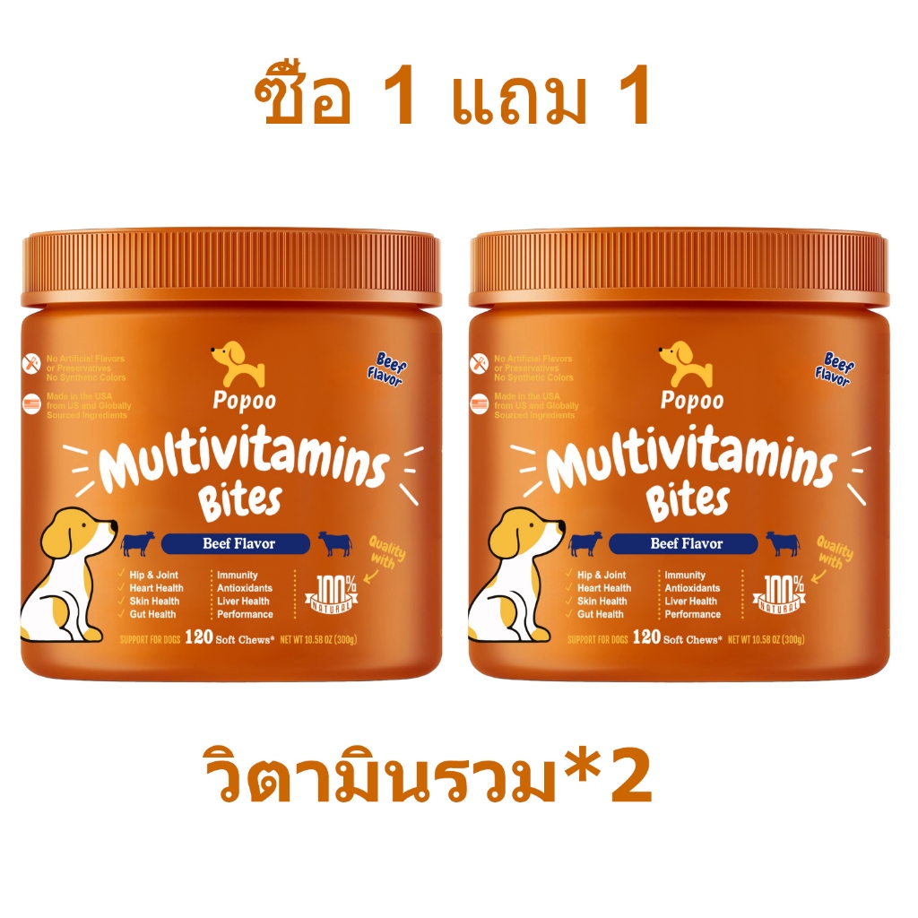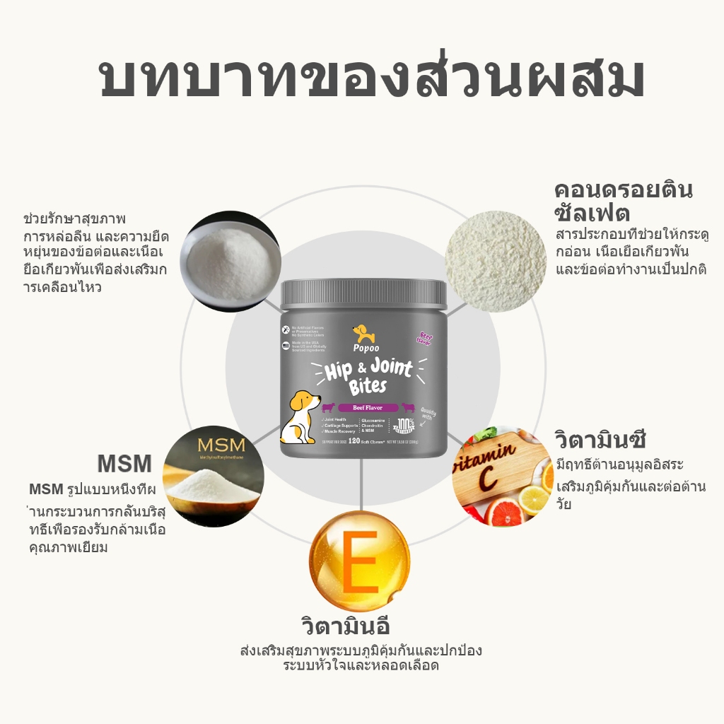 Popoo อาหารเสริมสุนัข บำรุงสะโพกและข้อต่อ Dog Hip & Joint Mobility Bites ขนมสุนัข อาหารสุนัข 120 ชิ้น