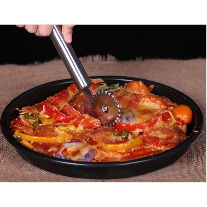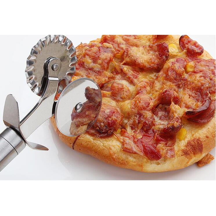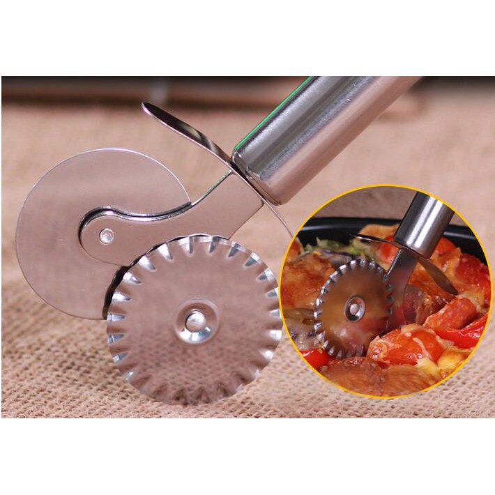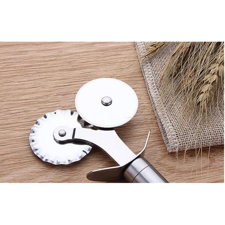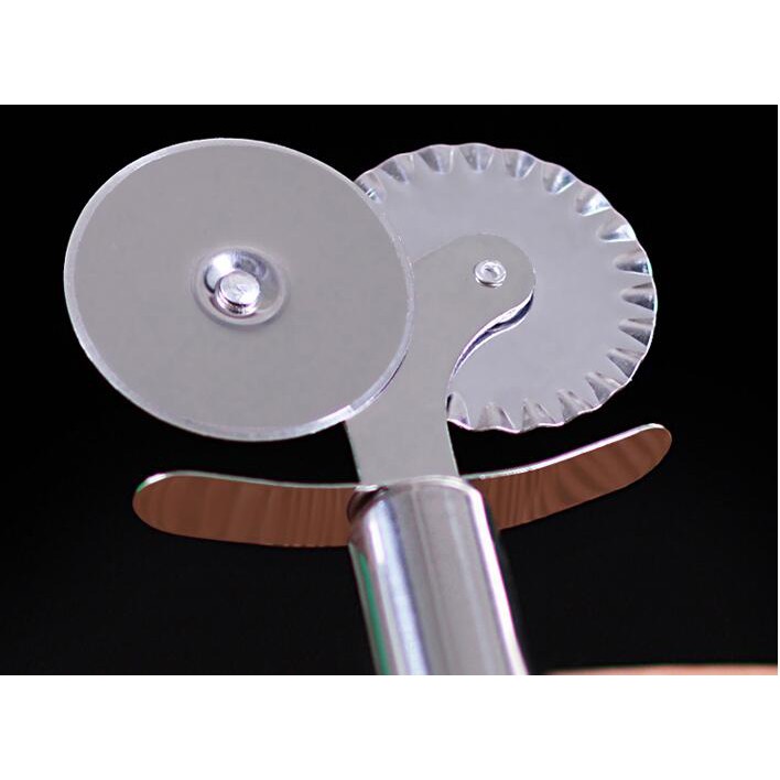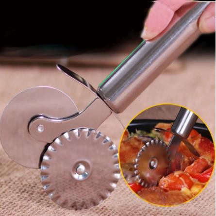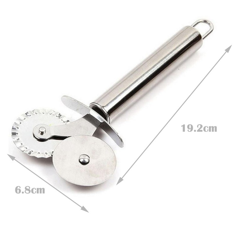 Double Roller เครื่องตัดพิซซ่าสแตนเลส Pastry Pasta Dough Crimper รอบ Hob ลูกไม้ล้อเครื่องมือห้องครัว
