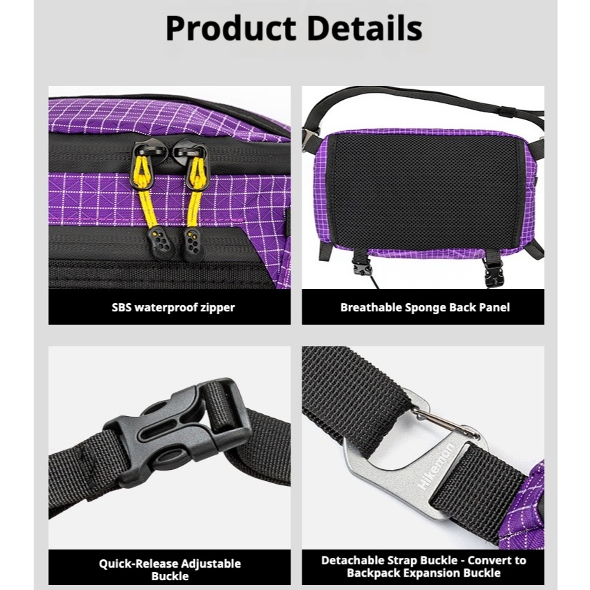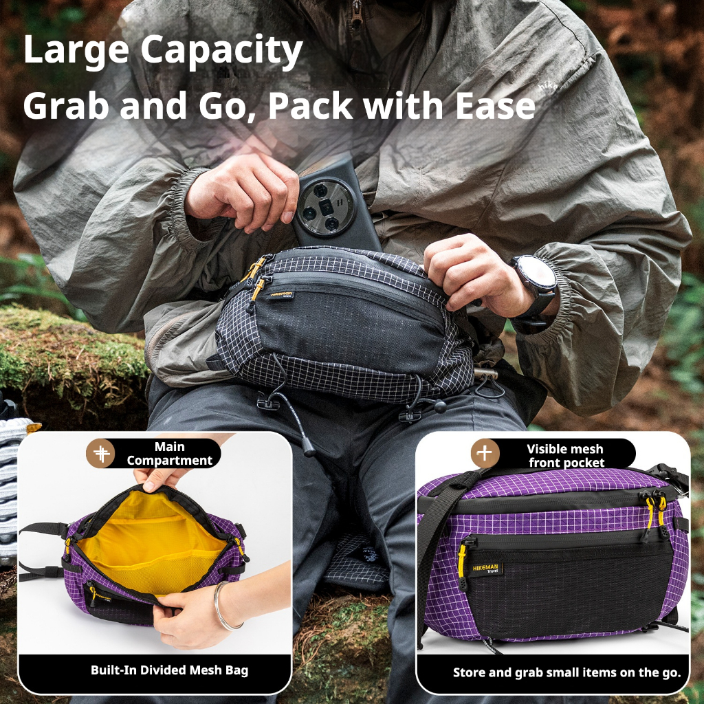 Hikeman Dyneema กระเป๋าคาดหน้าอกกลางแจ้งขยายได้, แพ็คสลิงปั่นจักรยานกันน้ําพร้อมความจุขนาดใหญ่สําหรับการเดินทางและเดินป่า