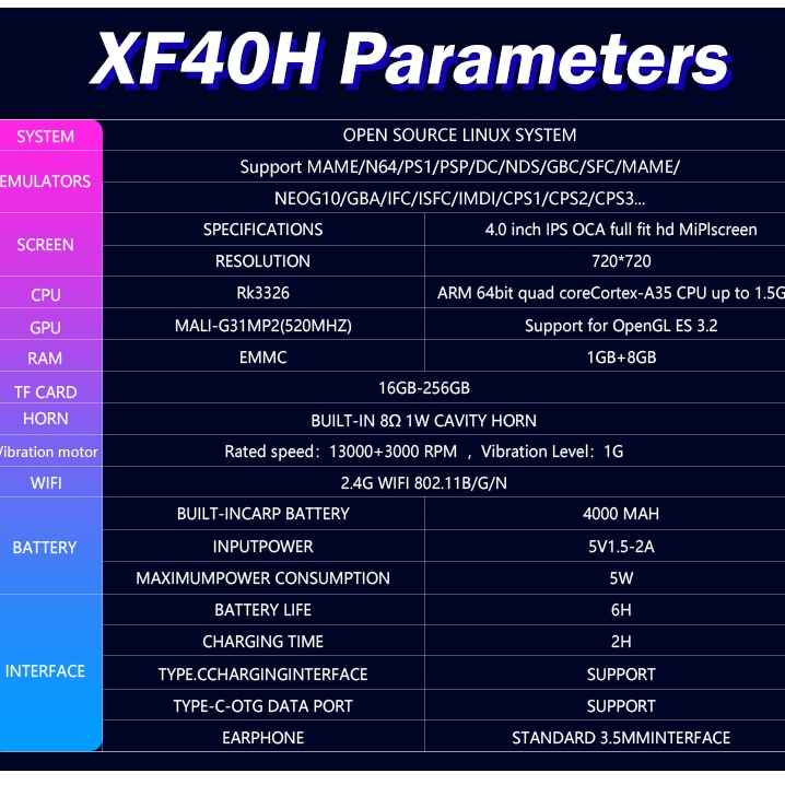 2025 ใหม่ XF40H Open Source เกมคอนโซลมือถือ หน้าจอ 4 นิ้ว เกม GBA PS เครื่องเล่นคู่ การต่อสู้ออนไลน์