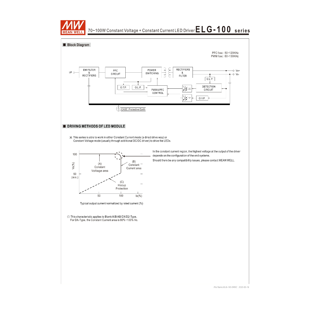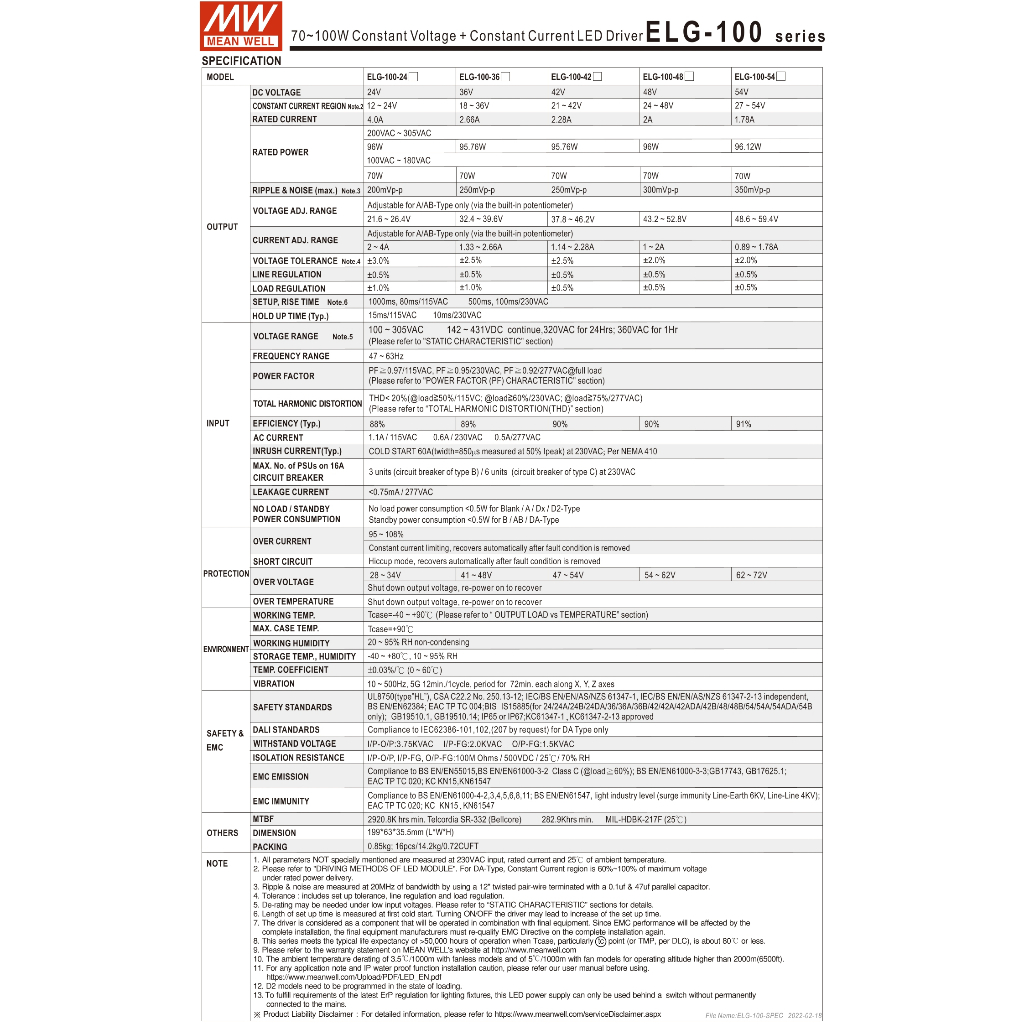 MEAN WELL ELG-100 ไดรฟ์แรงดันไฟฟ้าคงที่ LED กันน้ํา switching power supply 24/36/42/48/54 3Y A/B/DA ELG-100 series