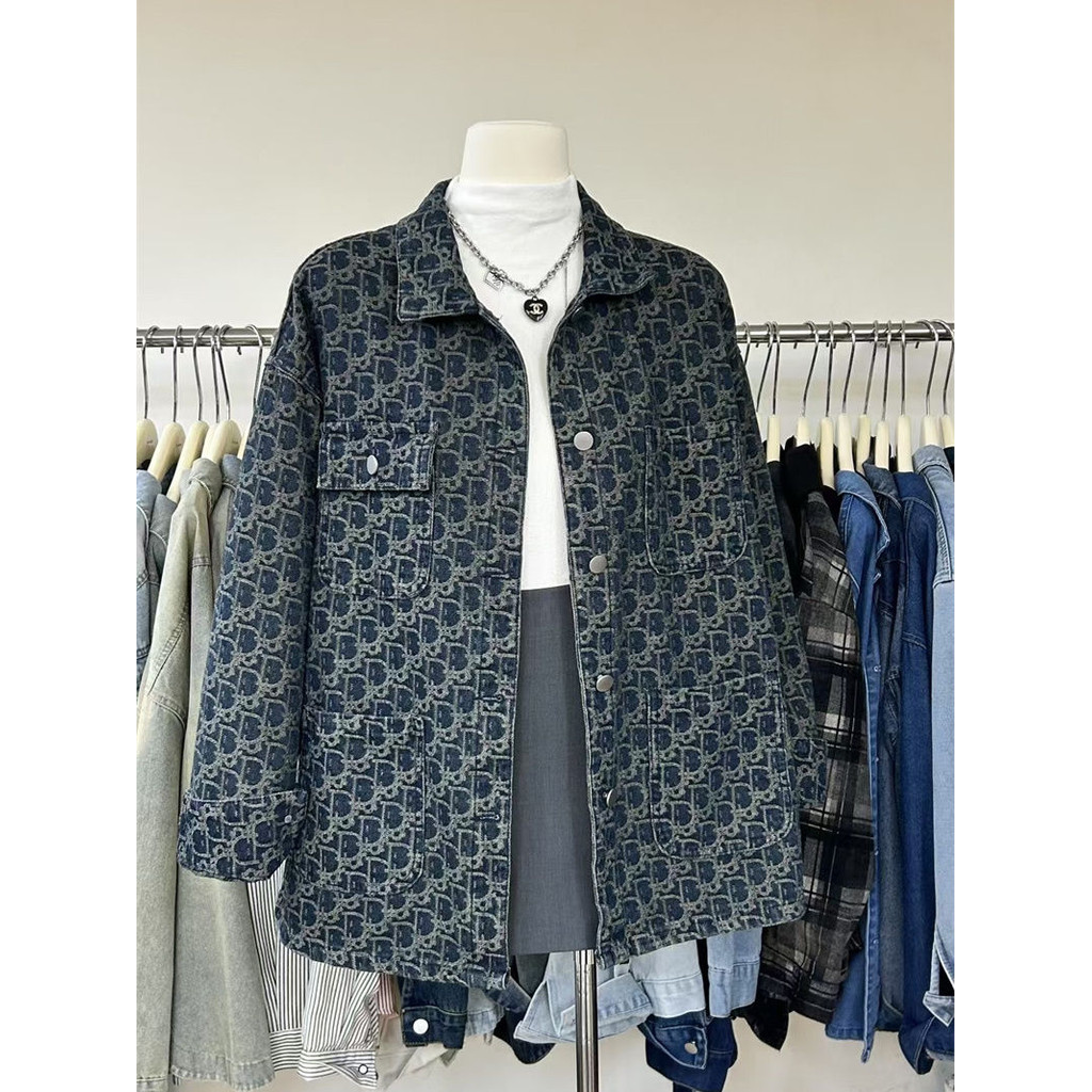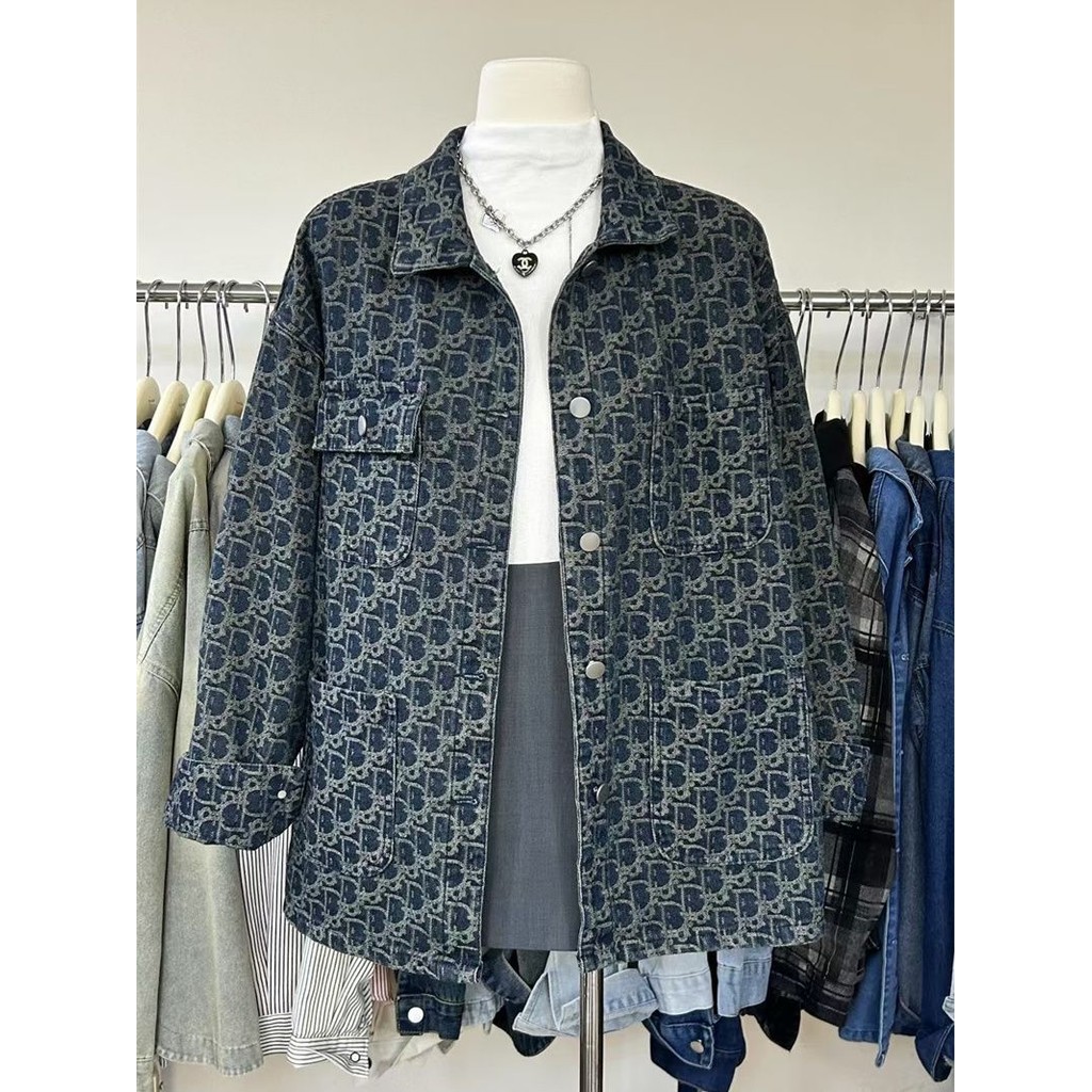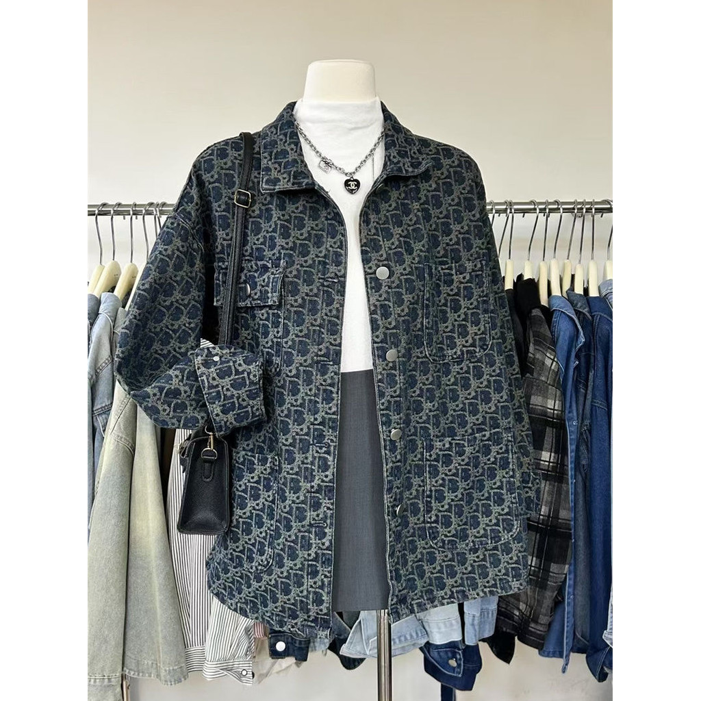 [Xiaohongshu แนะนํา] American High Street Retro Denim Jacket ผู้หญิง 2025 Design Niche ฤดูใบไม้ผลิฤดูใบไม้ร่วง All-Match พิมพ์แจ็คเก็ตด้านบน jzgc007th20250717
