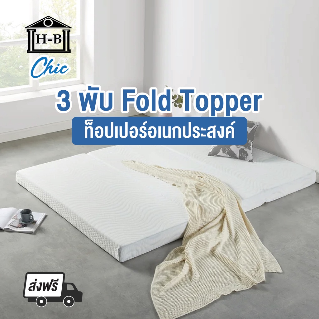 Home Best ส่งฟรี! ที่นอนยางพาราแท้ พับ 3 ท่อน Chic Fold Topper หนา4นิ้ว ส่งฟรีทั่วไทย ท็อปเปอร์