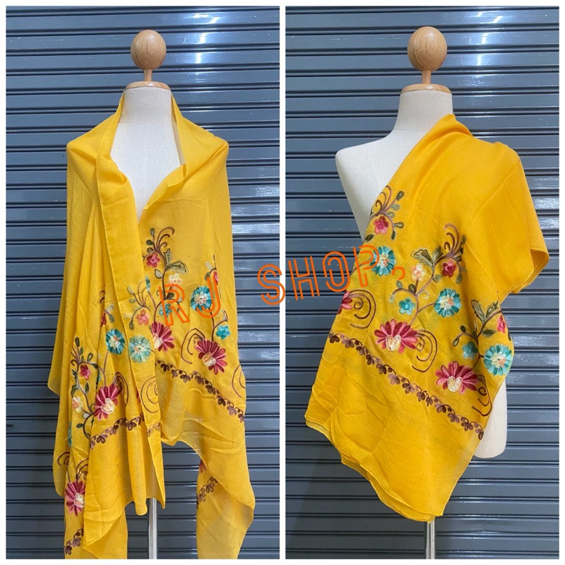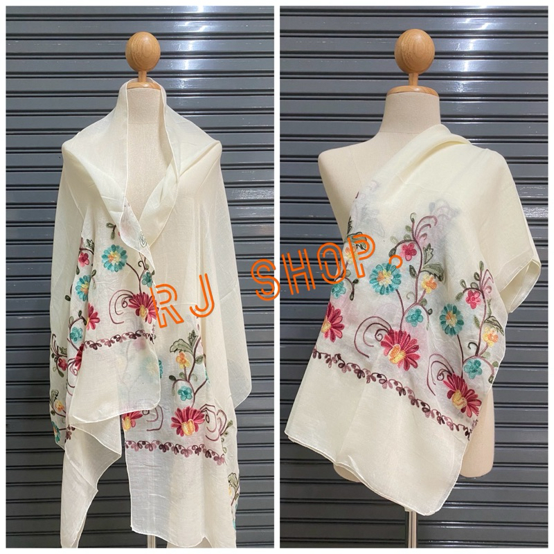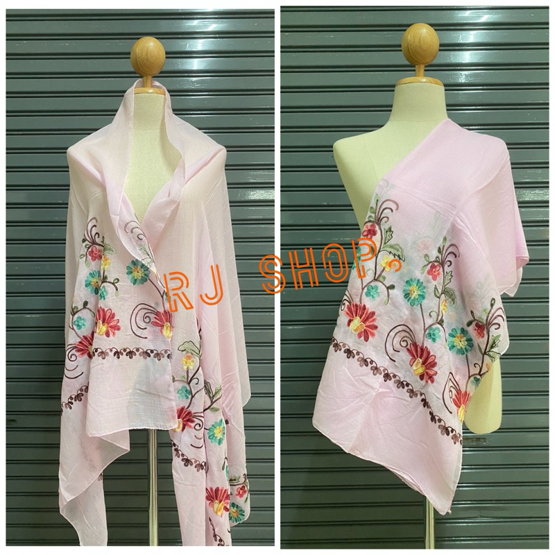 #ผ้าพันคอ งานปักลายดอกไม้ เนื้อเบาบาง ผืนใหญ่ (ลายขายดี)