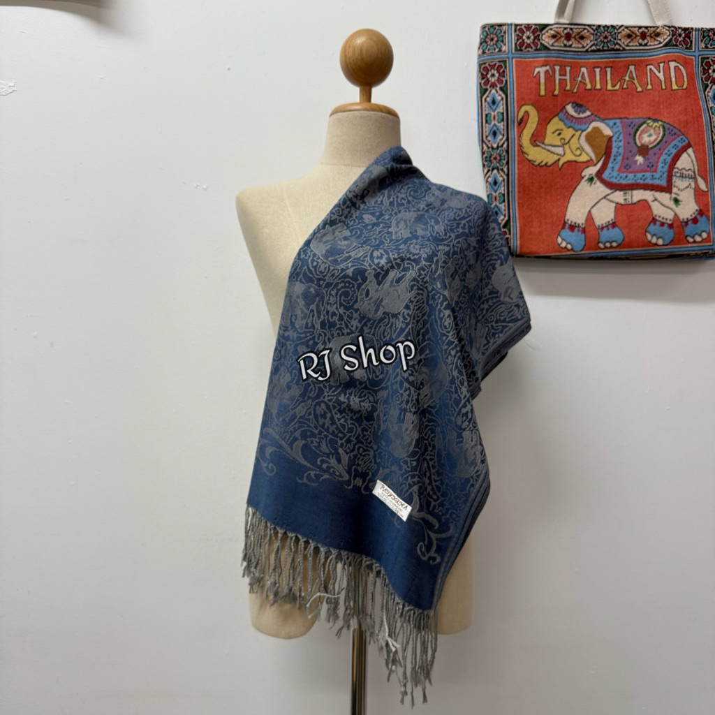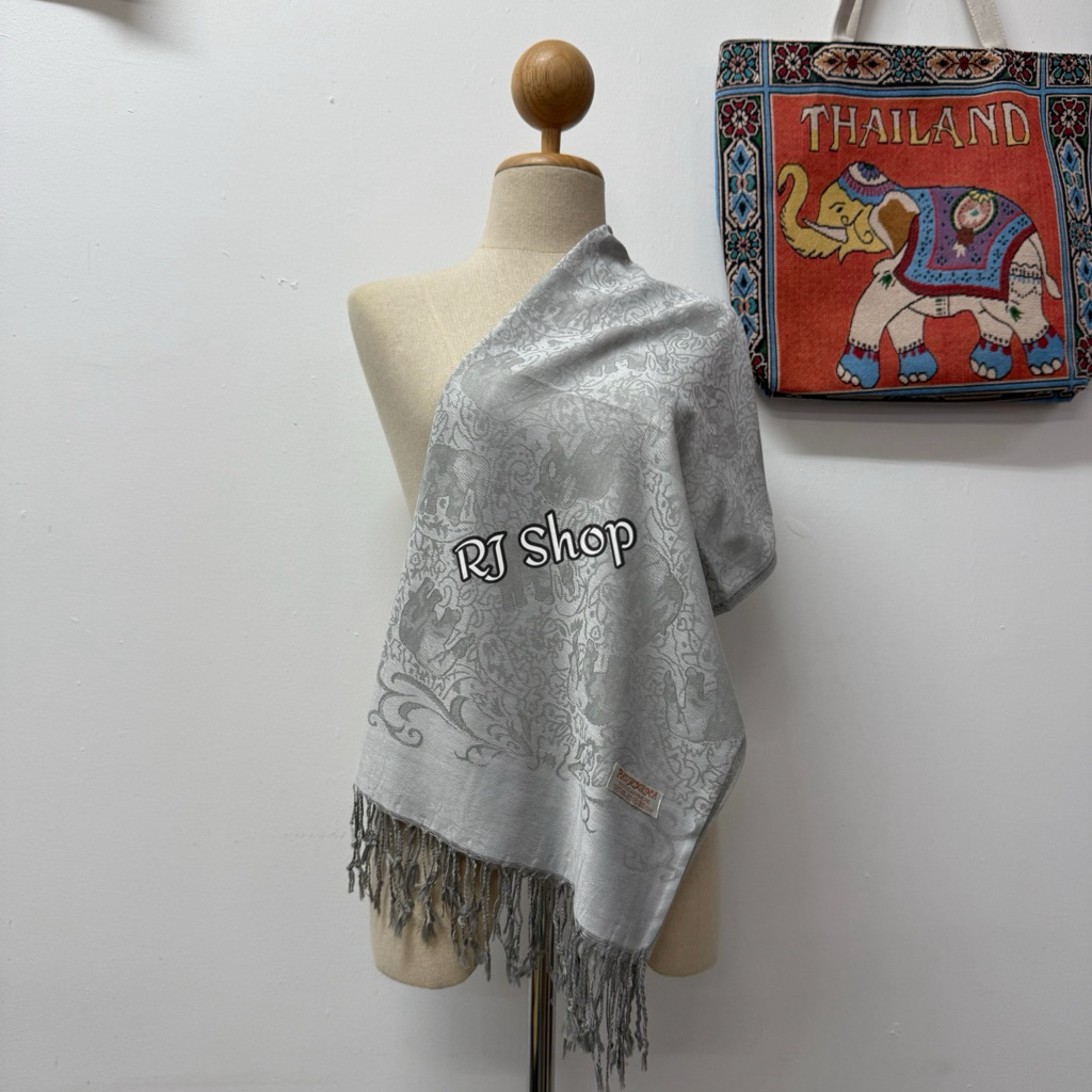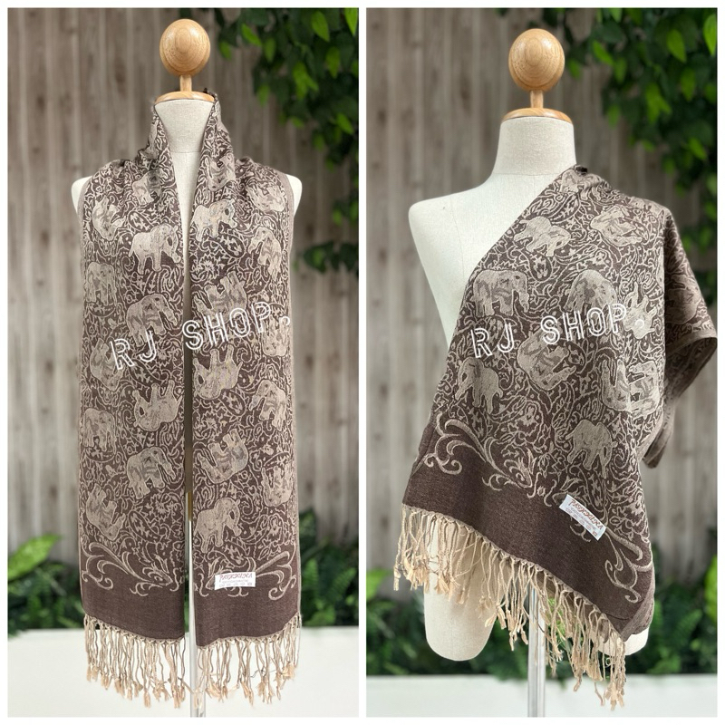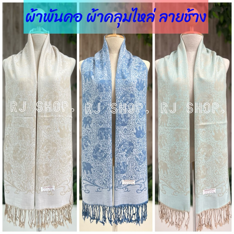 ผ้าพันคอ ผ้าคลุมไหล่ ลายช้าง งานแฟชั่น เนื้อนุ่ม เบาบาง ชื้อเป็นของฝาก (ลายใหม่)