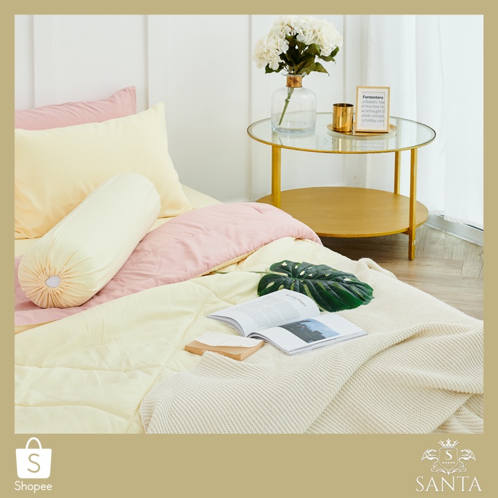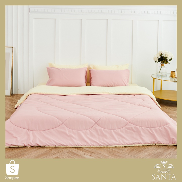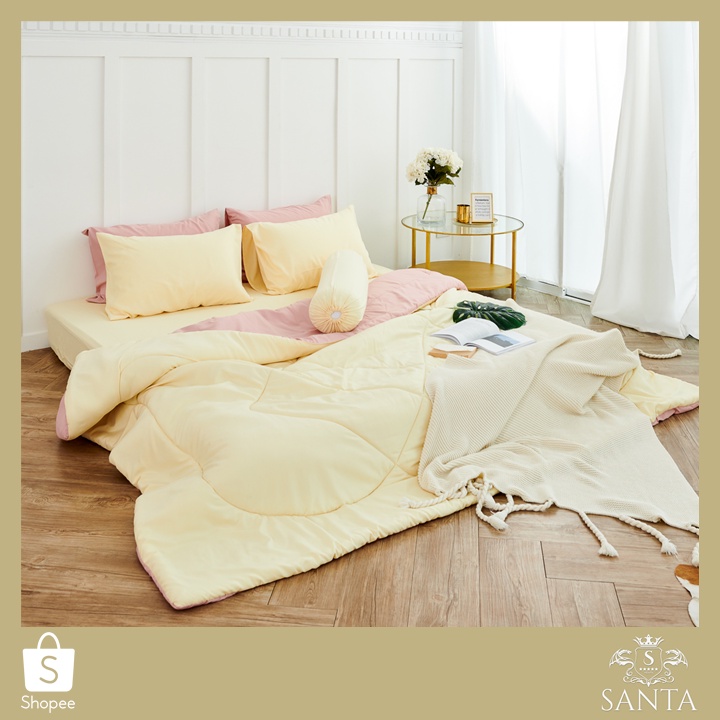SANTA ชุด ผ้าปูที่นอน ผ้าห่ม ผ้านวม สีเหลือง สีชมพู
