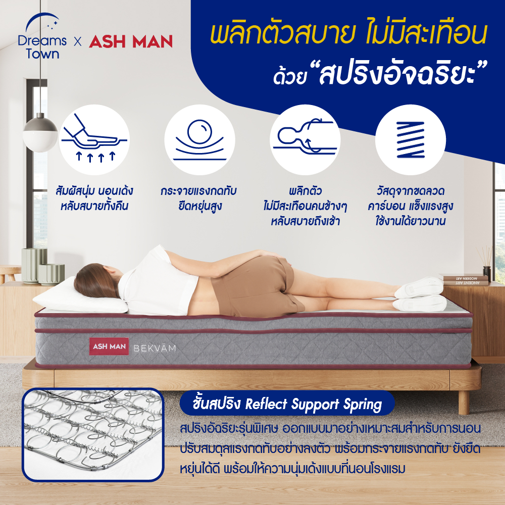 Ashman ที่นอนสปริงนุ่มเด้งเสริมโฟมทรงคลื่นออกแบบพิเศษ ช่วยกระจายน้ำหนัก ลดแรงกดทับได้ดียิ่งขึ้น รุ่น Bekvam ขนาด 3.5 ฟุต