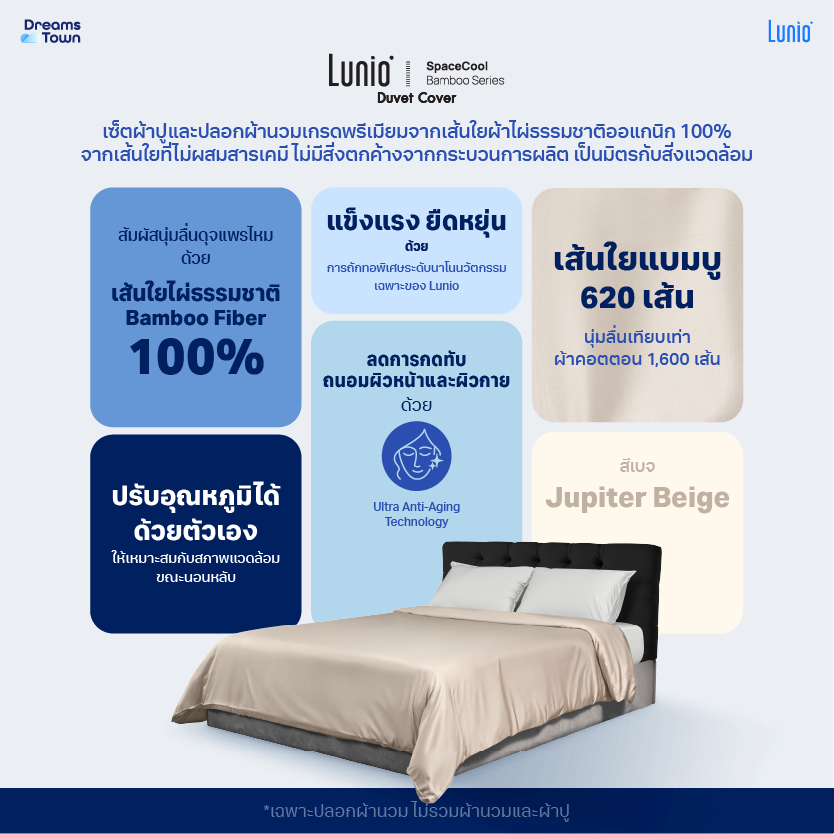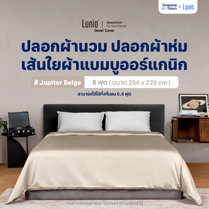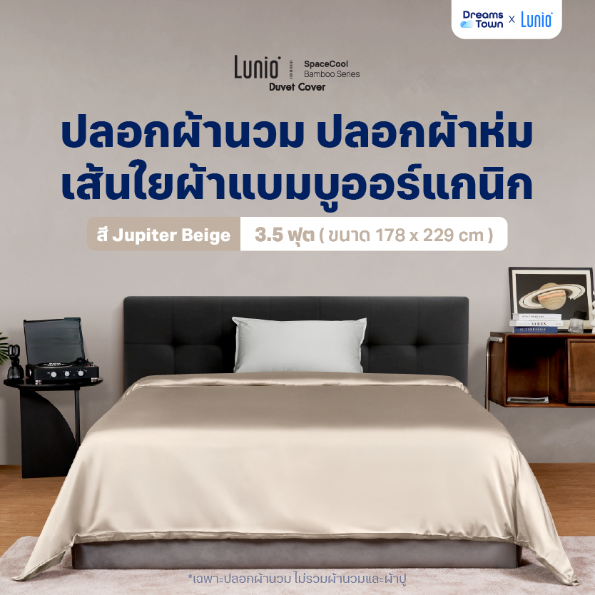 [Clearnce sale] Lunio ปลอกผ้านวม เกรดพรีเมียม สัมผัสนุ่มลื่น ห่มแล้วไม่ร้อน รุ่น SpaceCool Bamboo Duvet Cover สีเบจ