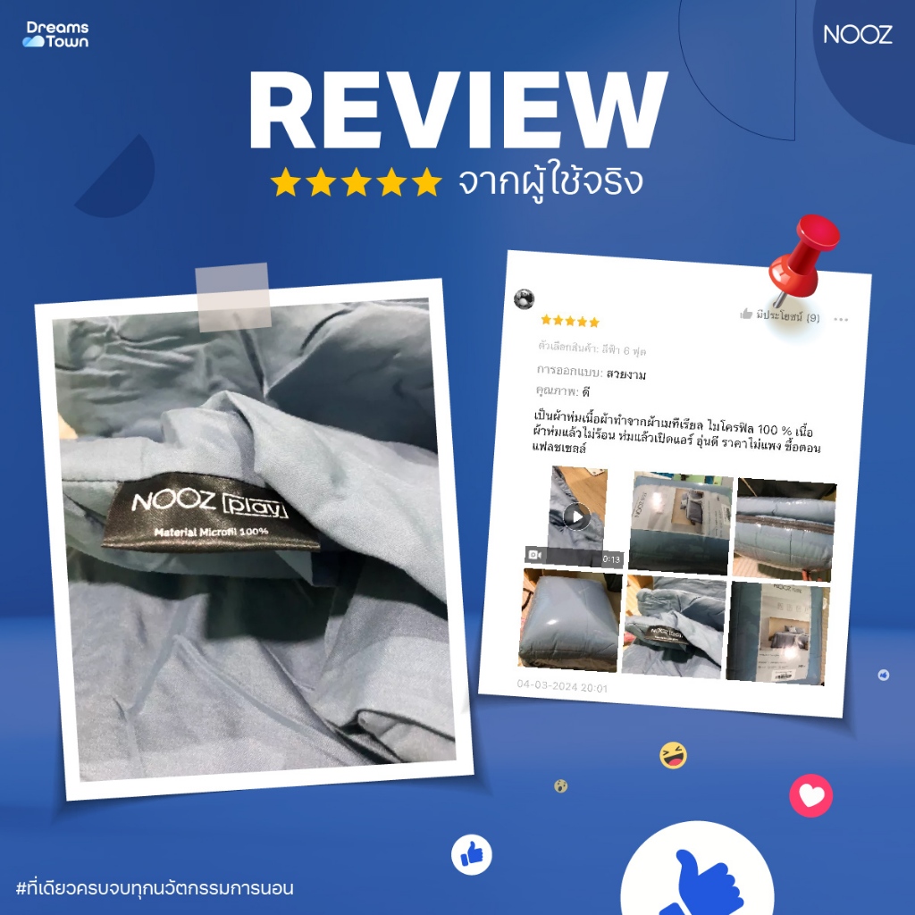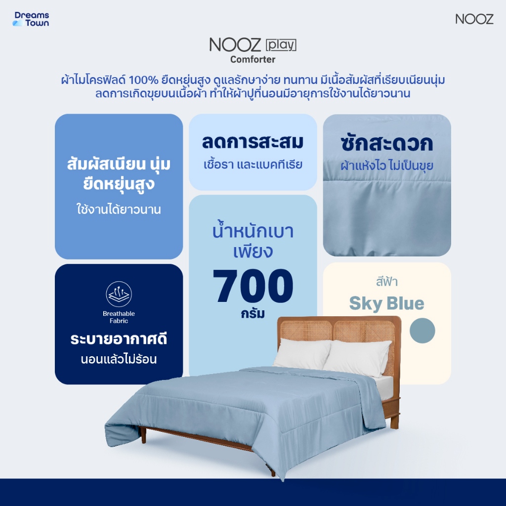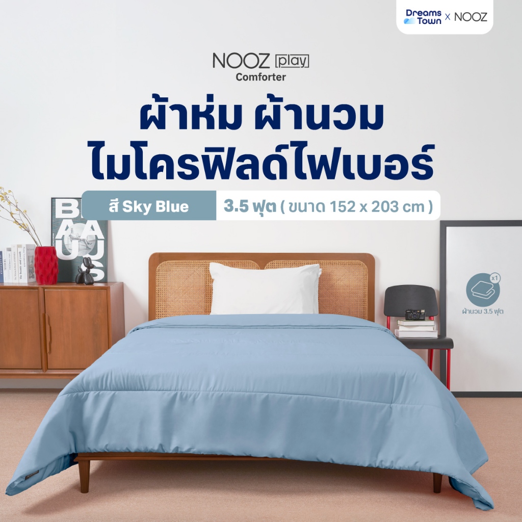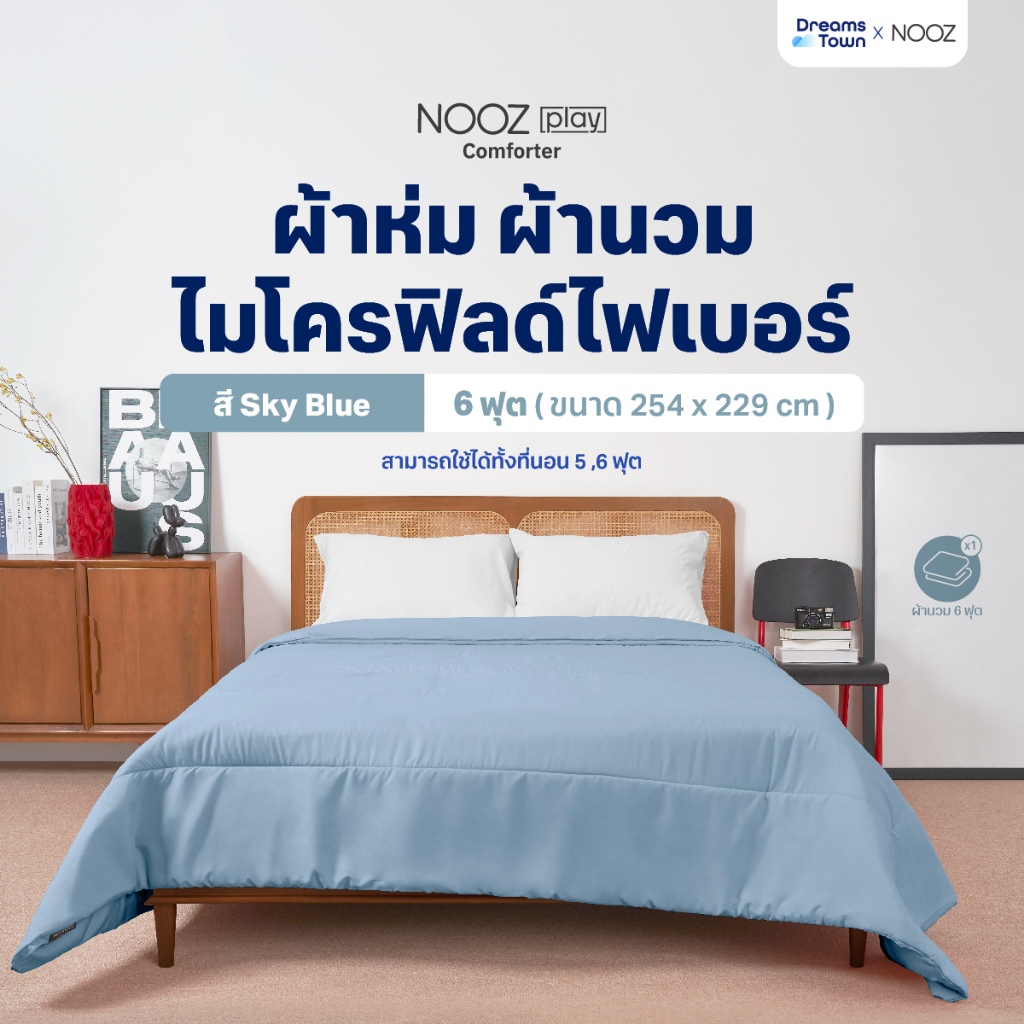 Nooz Play ผ้านวม ผ้าห่ม สัมผัสนุ่ม ไม่บาดผิว ทำจากผ้าไมโครฟิลด์ 100% ยืดหยุ่นสูง รุ่น Comforter สีฟ้า Sky Blue