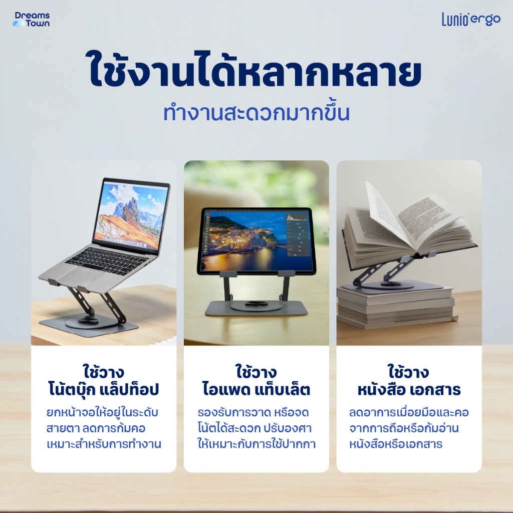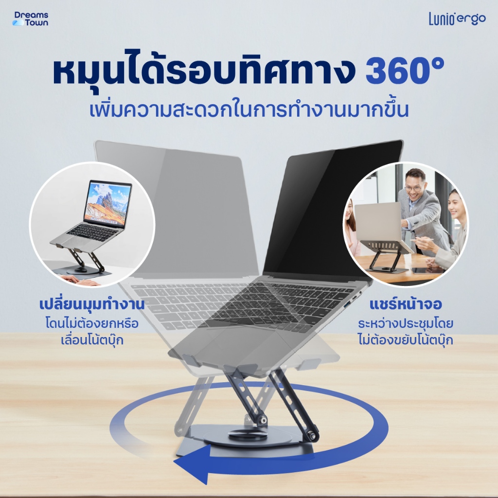 Lunio Ergo แท่นวางโน๊ตบุ๊ค ปรับองศาจอ ช่วยระบายความร้อน หมุนได้360° รับน้ำหนักได้ดี CyLift Rotating Laptop Riser สีเทา