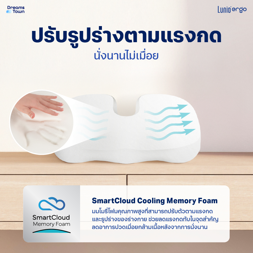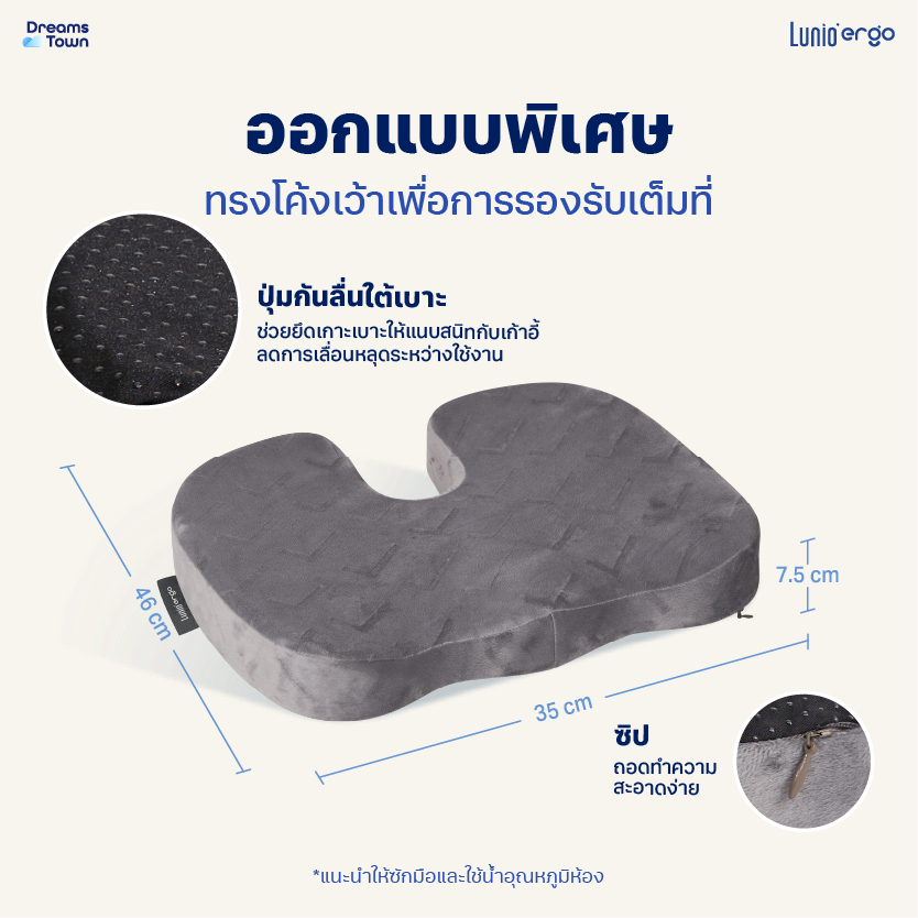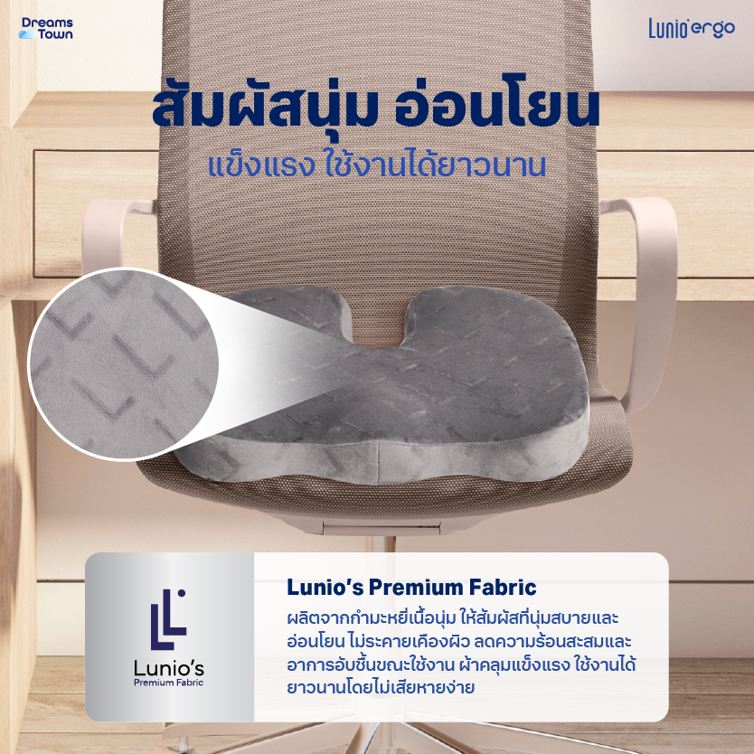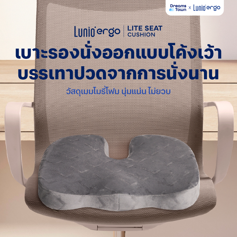 Lunio Ergo เบาะรองนั่ง กระจายน้ำหนักดี ออกแบบทรงโค้งเว้า ช่วยลดแรงกดทับ นั่งนานไม่เมื่อย รุ่น Lite Seat Cushion