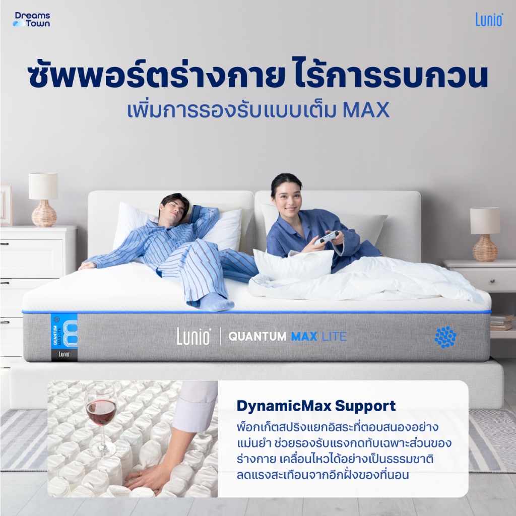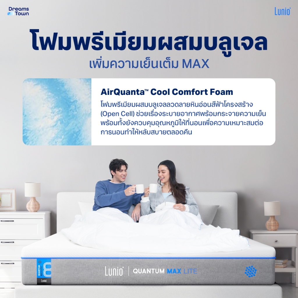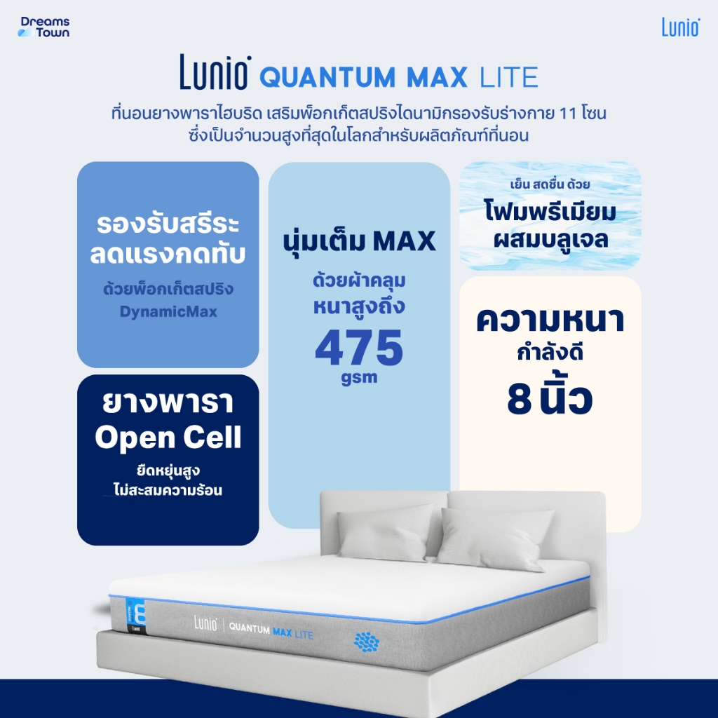 Lunio ที่นอนยางพาราไฮบริด เสริมพ็อกเก็ตสปริง ระบายความร้อนได้ดี แน่น ไม่ยวบ หนา 8นิ้ว รุ่น Quantum Max Lite ขนาด 3.5ฟุต