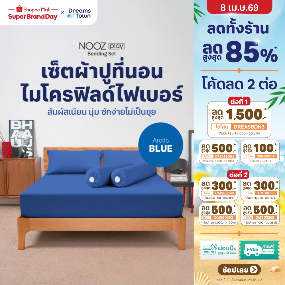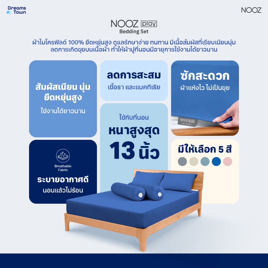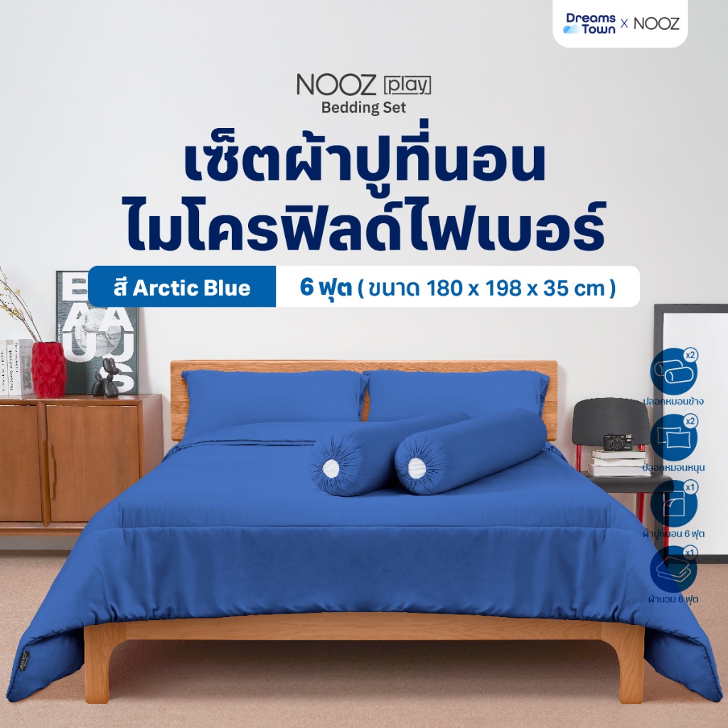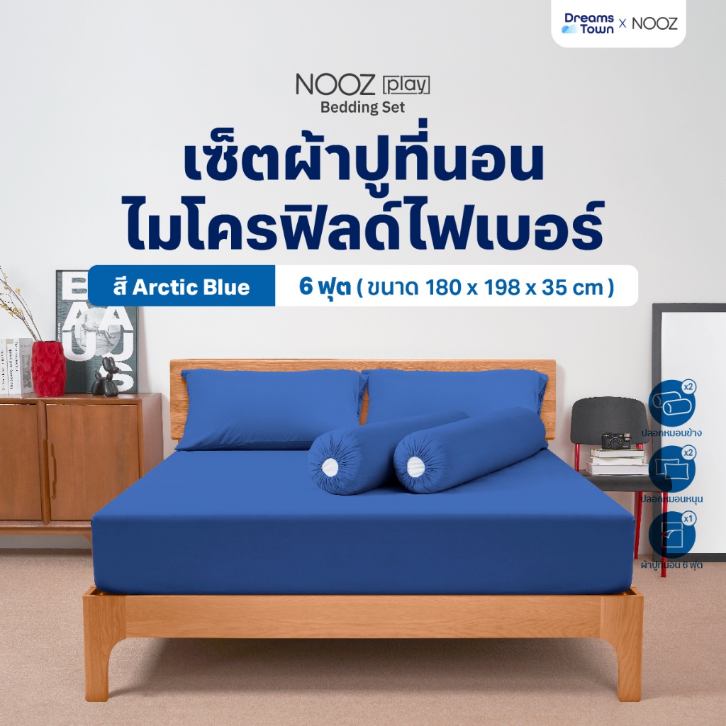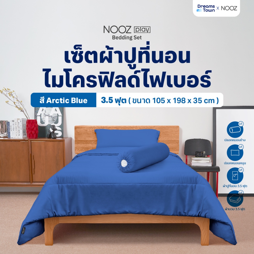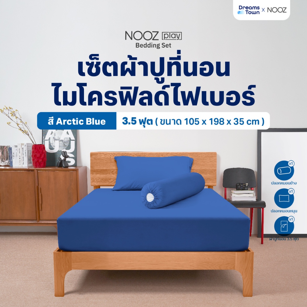 Nooz Play เซ็ตผ้าปูที่นอน สัมผัสนุ่ม ไม่บาดผิว สไตล์มินิมอล ทำจากผ้าไมโครฟิลด์100%รุ่น Bedding Set สีฟ้าเข้ม Arctic Blue