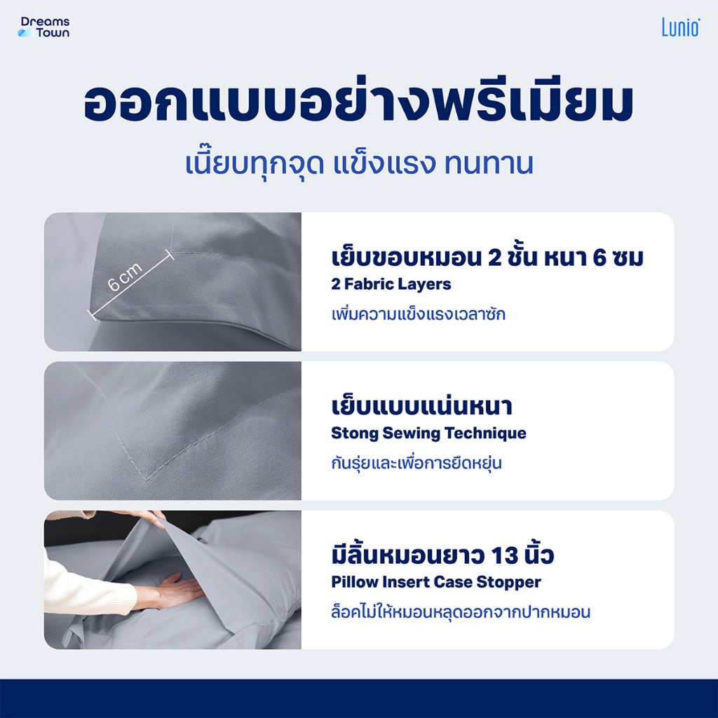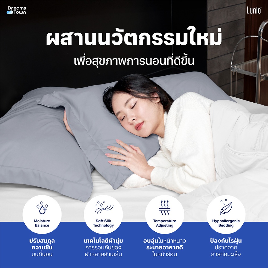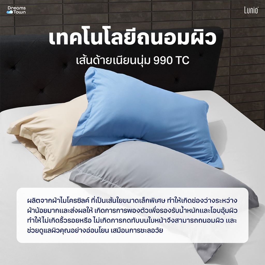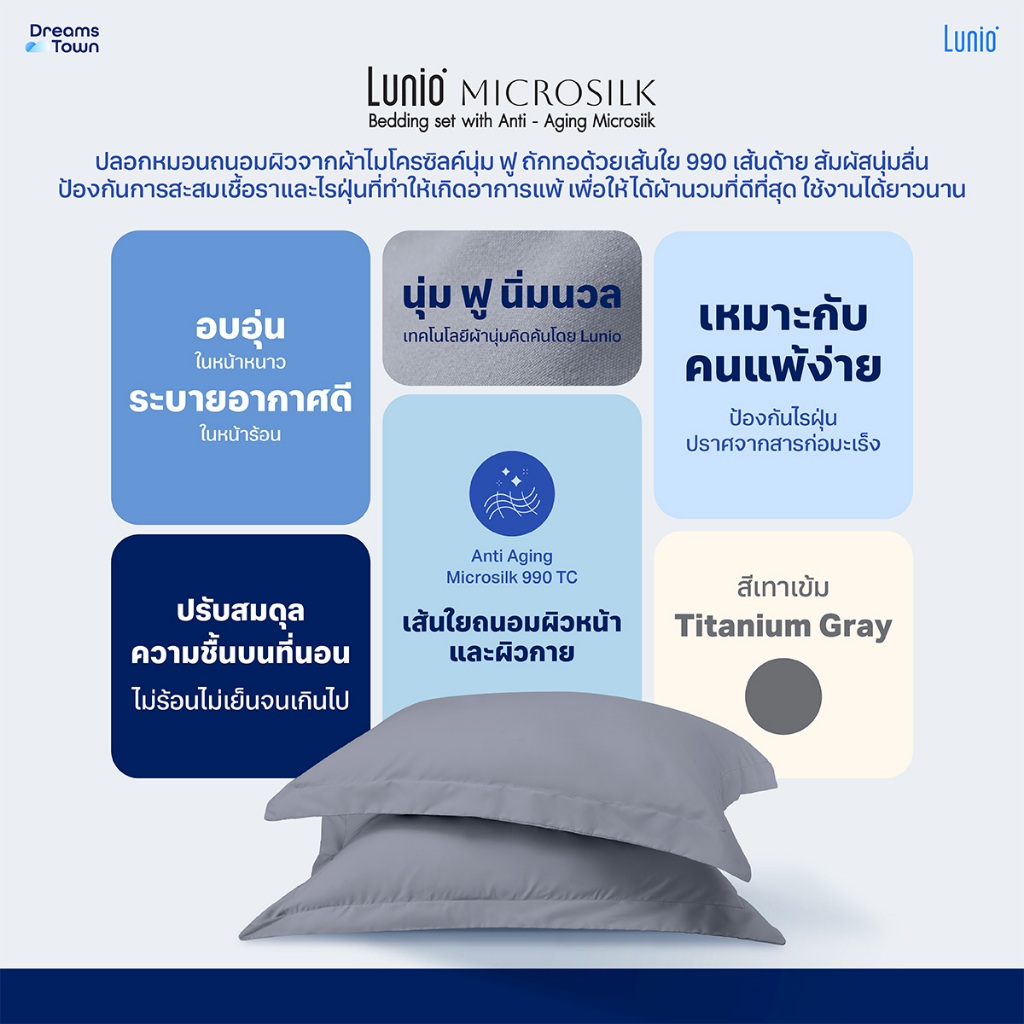 Lunio Microsilk Pillow Case ปลอกหมอน เทคโนโลยีถนอมผิว ลดการเกิดริ้วรอยบนใบหน้า สัมผัสนุ่ม ทอ990เส้นด้าย สีเทา จำนวน2ชิ้น
