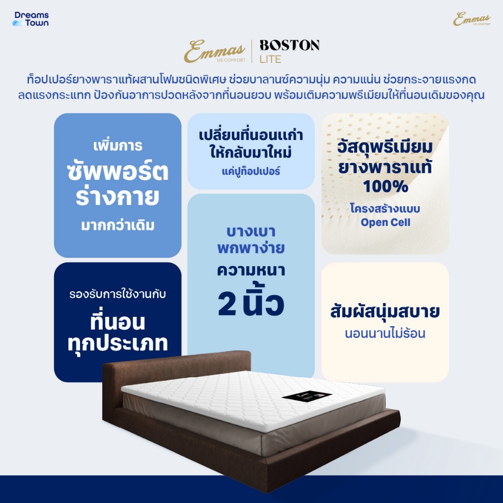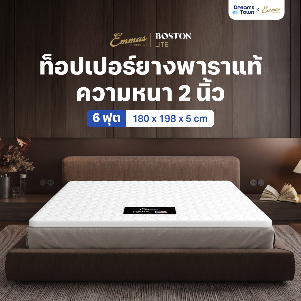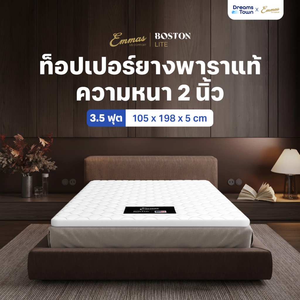Emmas ที่นอนยางพาราแท้ ที่นอนปิคนิค ท็อปเปอร์ ที่รองนอน เพิ่มความแน่นให้ที่นอน ลดปวดหลัง รุ่น Boston Topper Lite
