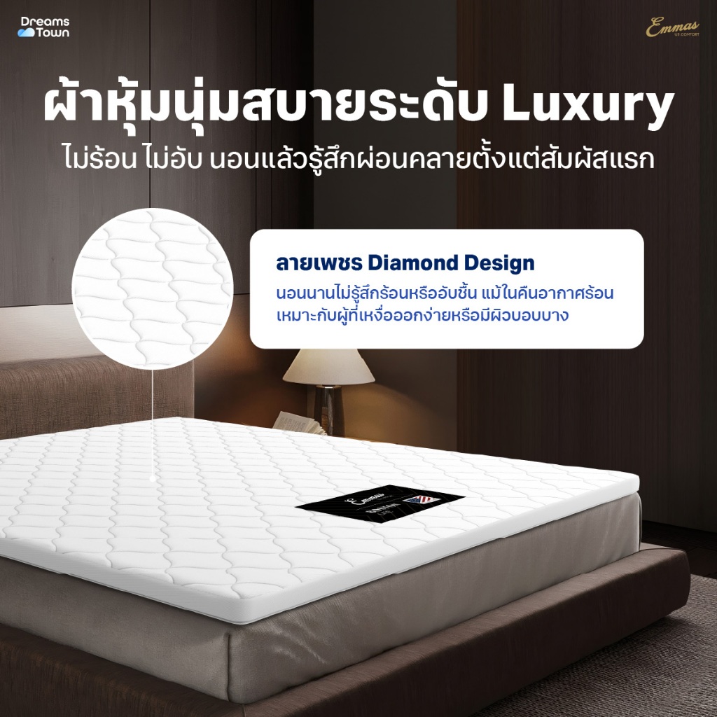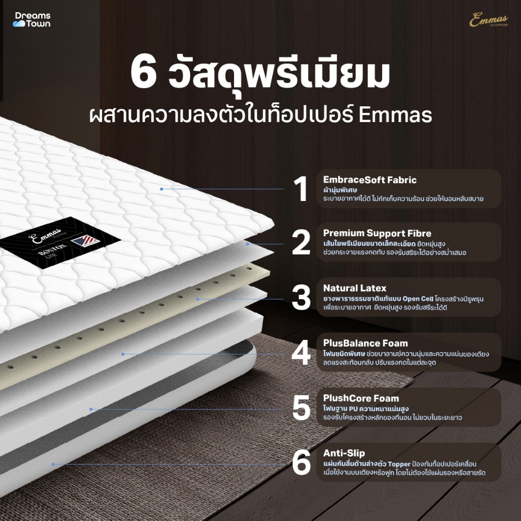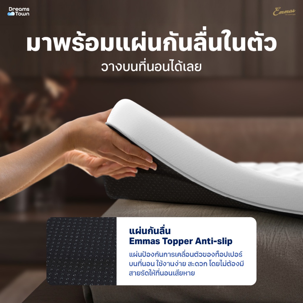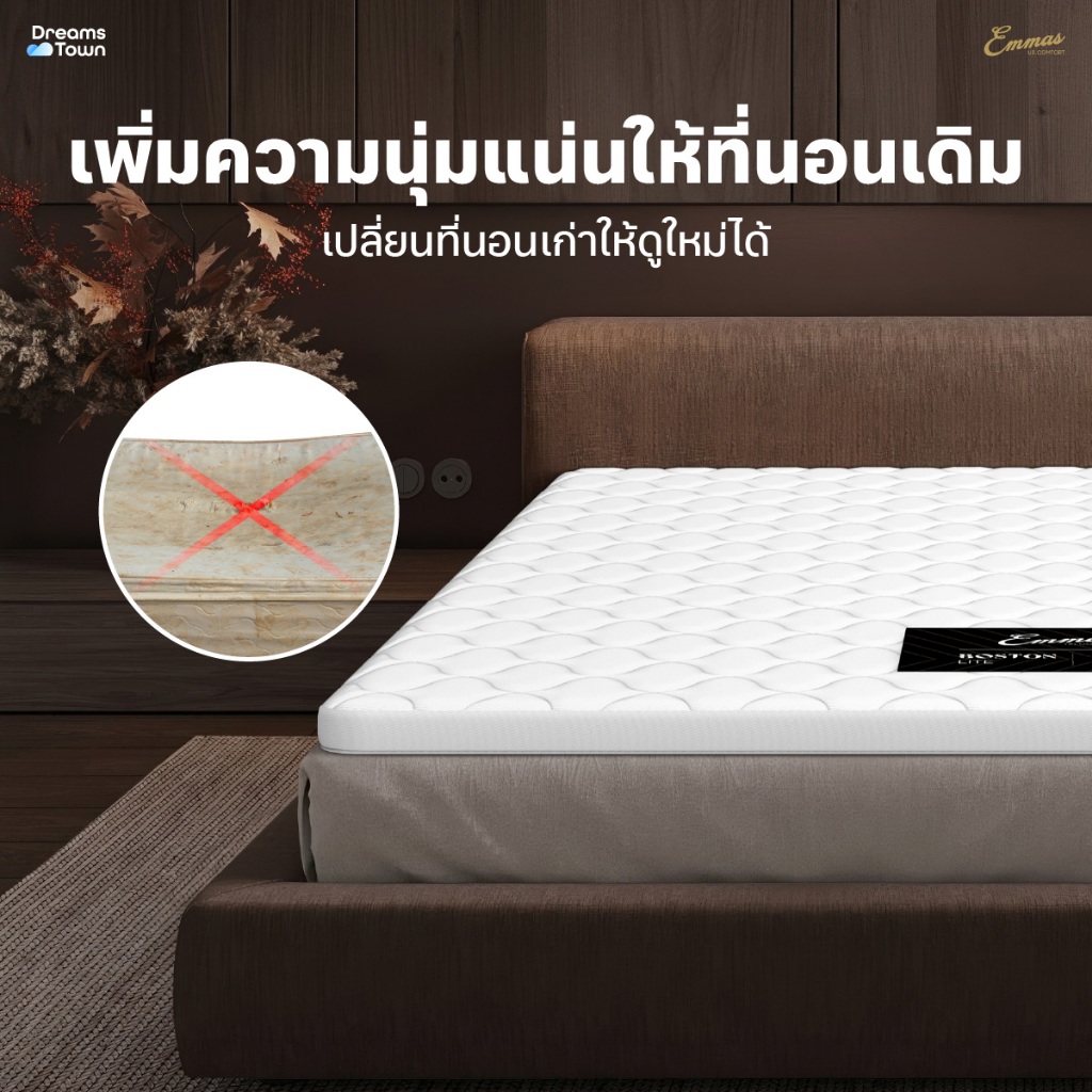 Emmas ที่นอนยางพาราแท้ ที่นอนปิคนิค ท็อปเปอร์ ที่รองนอน เพิ่มความแน่นให้ที่นอน ลดปวดหลัง รุ่น Boston Topper Lite