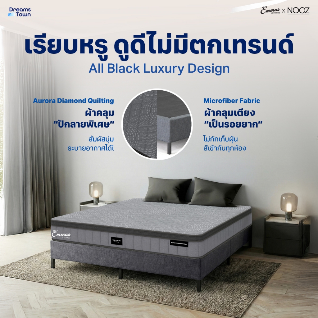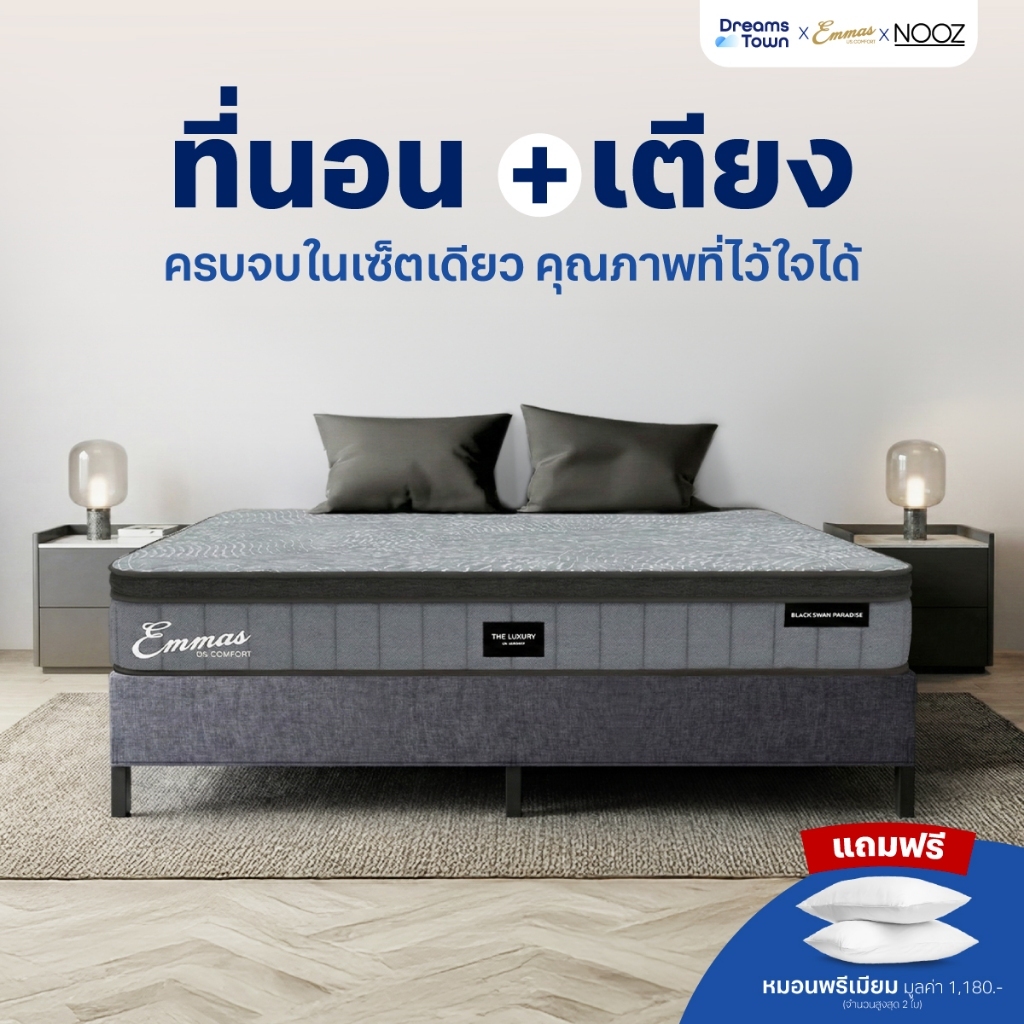 [เซ็ตสุดคุ้ม] Emmas Black Swan Paradise ที่นอนยางพาราแท้ รองรับสรีระได้ดี มาพร้อมเตียงนอนโครงเหล็กหนา แข็งแรง รุ่น Pixel