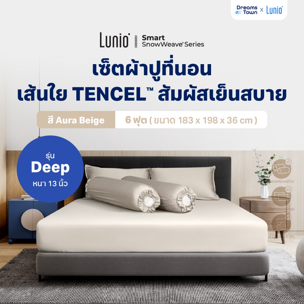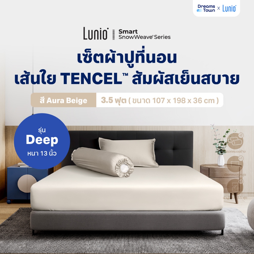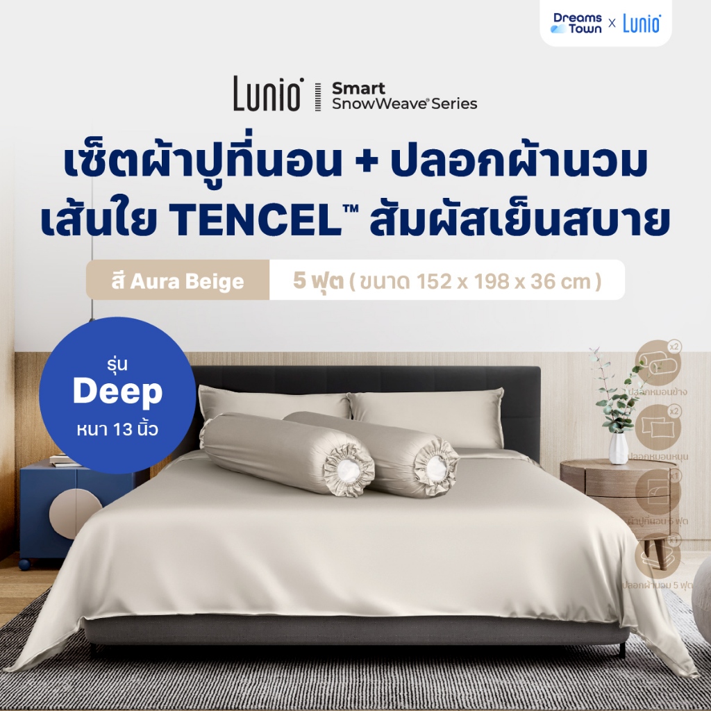 Lunio ผ้าปูที่นอน ปลอกหมอน เกรดพรีเมียม สัมผัส นุ่ม เย็นสบาย อ่อนโยนต่อผิว รุ่น Smart SnowWeave Bedding Set สีเบจ