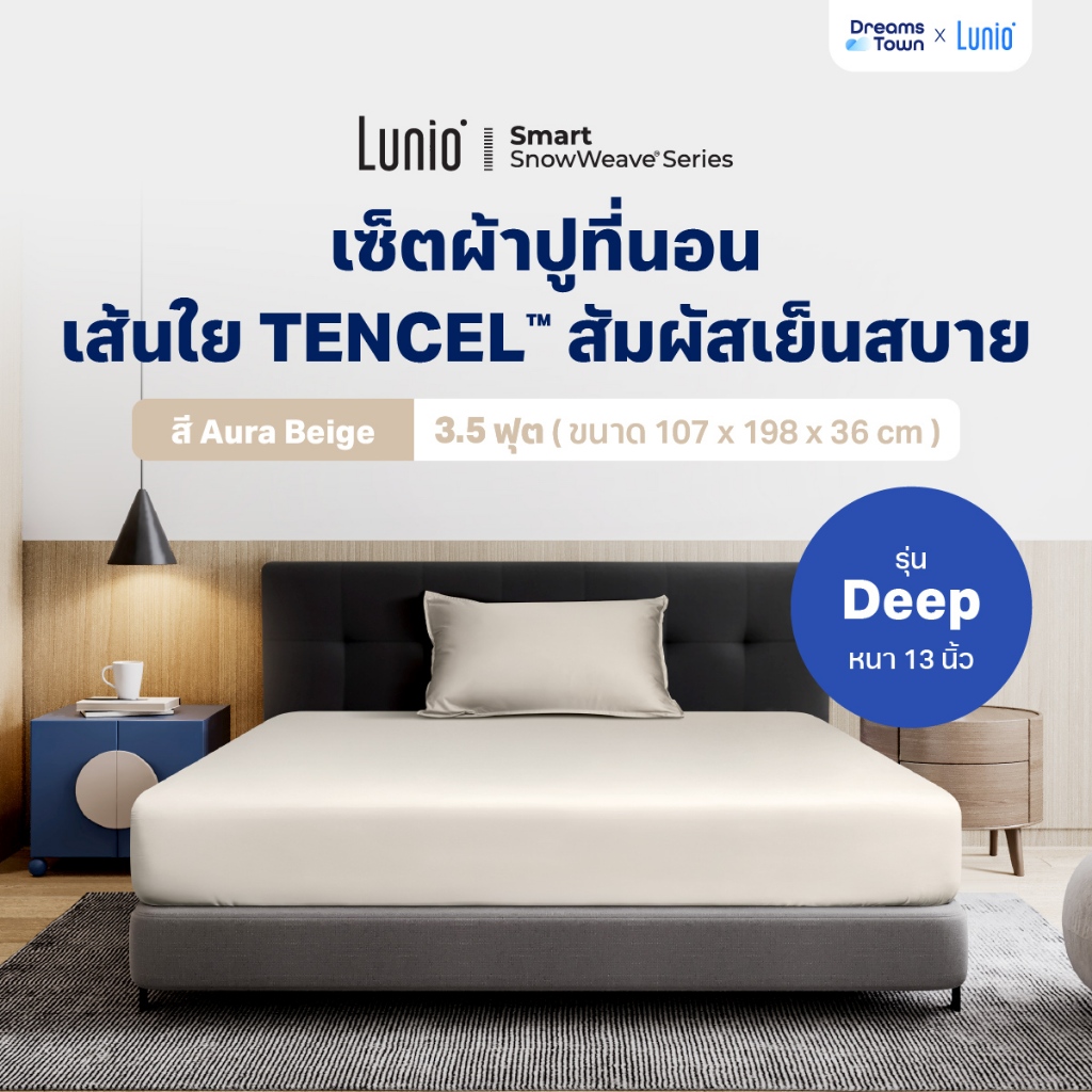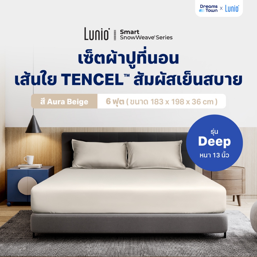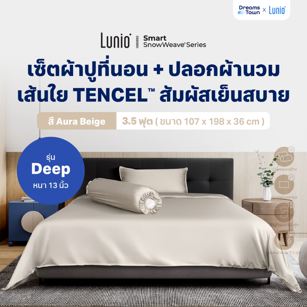 Lunio ผ้าปูที่นอน ปลอกหมอน เกรดพรีเมียม สัมผัส นุ่ม เย็นสบาย อ่อนโยนต่อผิว รุ่น Smart SnowWeave Bedding Set สีเบจ