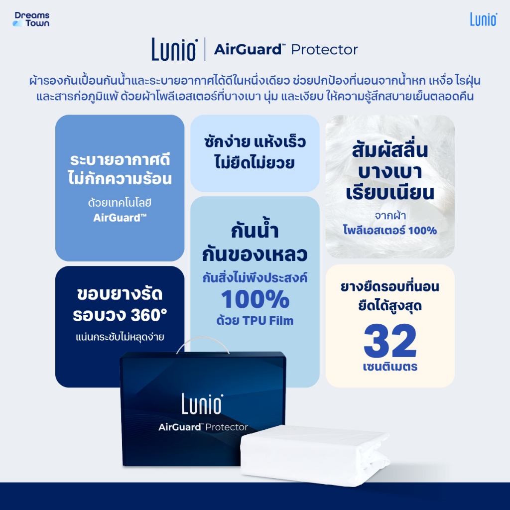 Lunio ผ้าปูที่นอน กันน้ำ100% กันสิ่งสกปรก กันคราบ รักษาความสะอาดให้ที่นอน ถอดทำความสะอาดง่าย รุ่น AirGuard Protector
