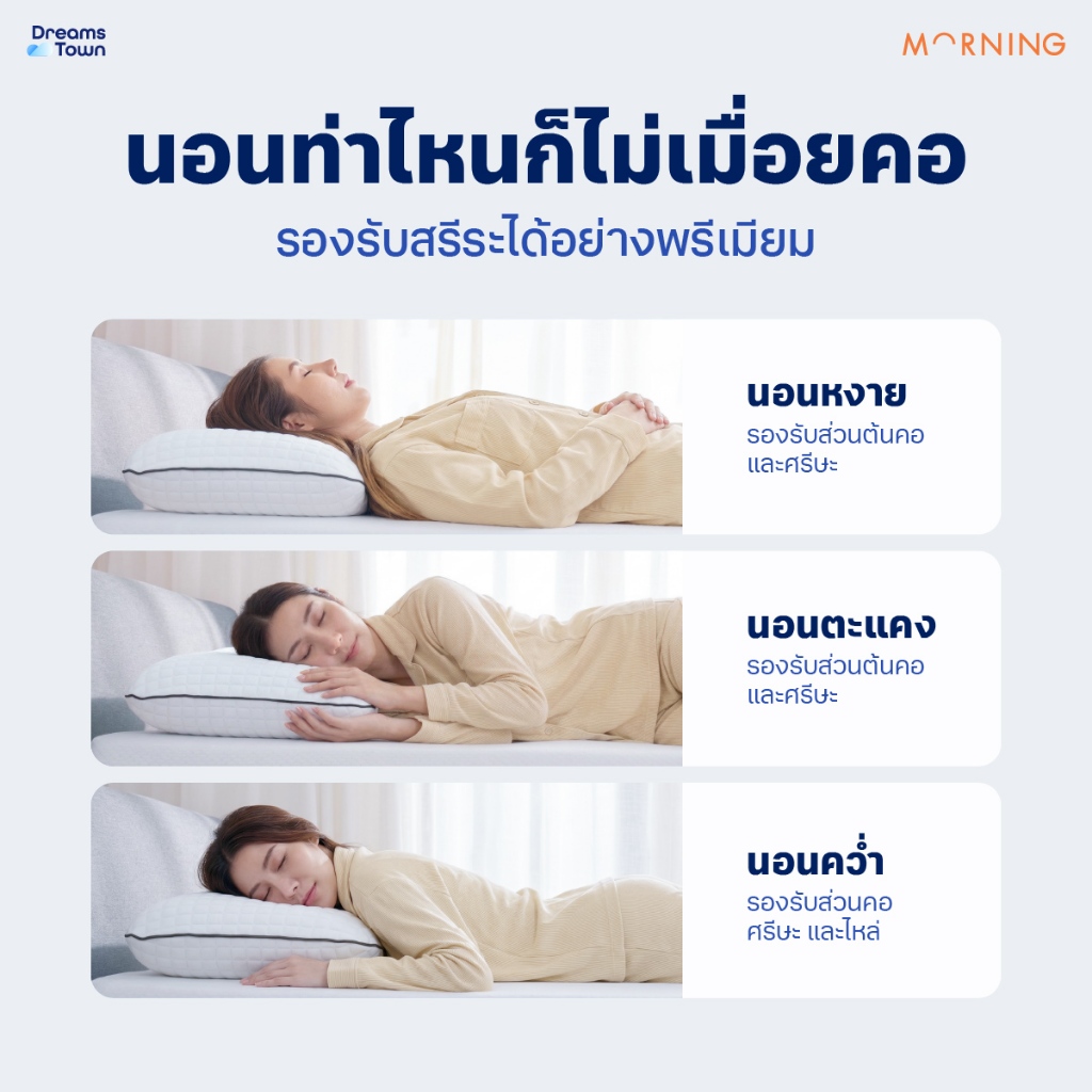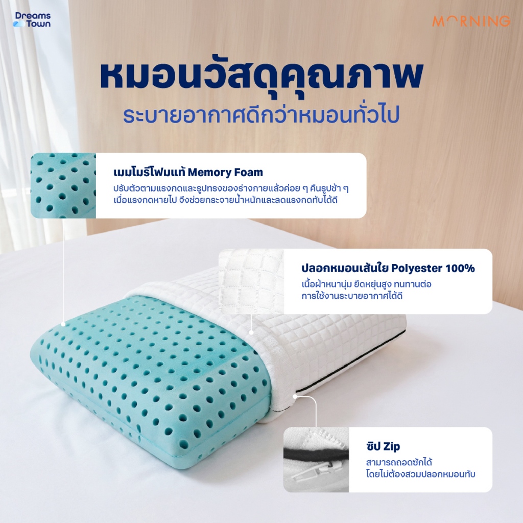 Morning Sleep หมอนเมมโมรี่โฟม Memory Foam เหมาะสำหรับคนที่ชอบนอนหมอนนุ่มแต่ไม่ยวบ รุ่น Signature Pillow