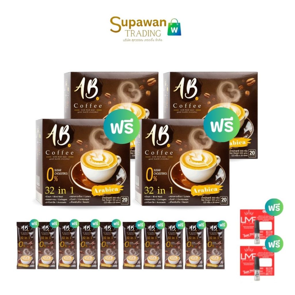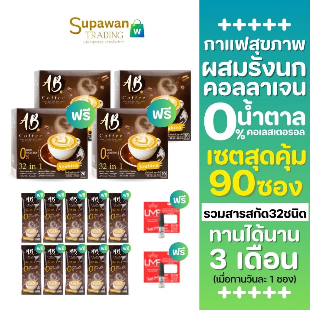 AB Coffee กาแฟรังนก คอลลาเจน 32in1 แถมฟรี 10 ซอง + น้ำหอม 2 ชิ้น