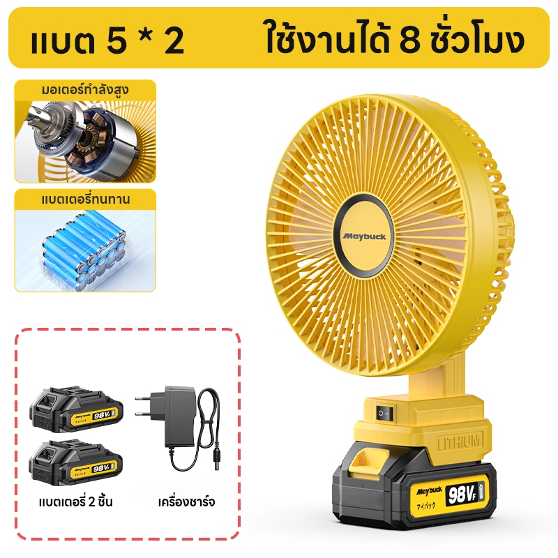พัดลมแบตเตอรี่ไร้สาย 8นิ้ว ความจุแบต 21V พัดลมไร้สาย พัดลมแบตเตอรี่ ไม่ต้องเสียบไฟ ไม่จำกัดสถานที่ใช้ได้ทุกที่