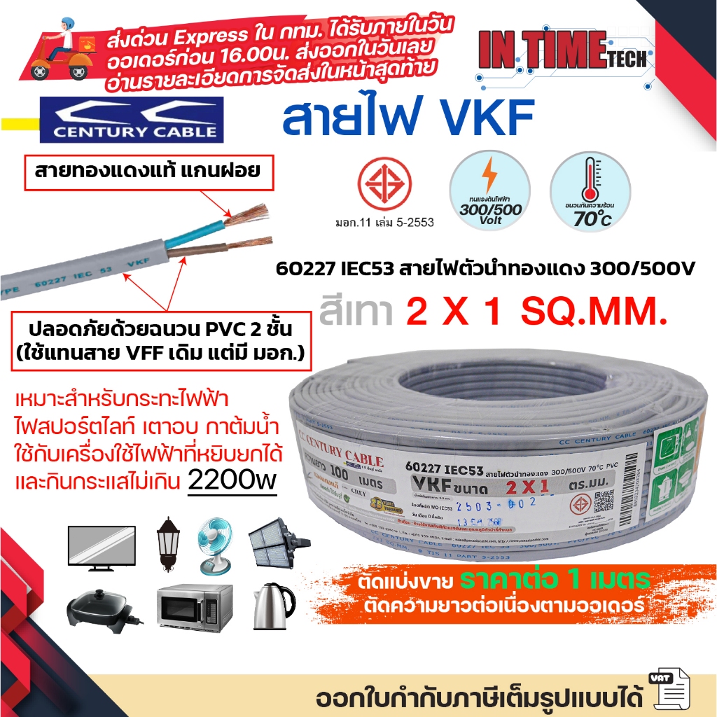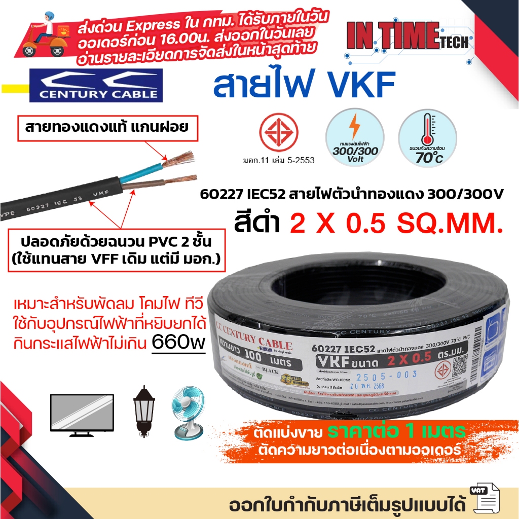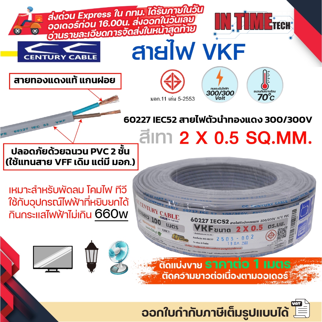 (ราคาต่อ1เมตร ตัดยาวต่อเนื่อง) century สายไฟ VKF 2x0.5 2x1 sqmm มอก IEC52 53 300-500V ทองแดงแกนฝอย หุ้ม PVC 2 ชั้น ใช้แท