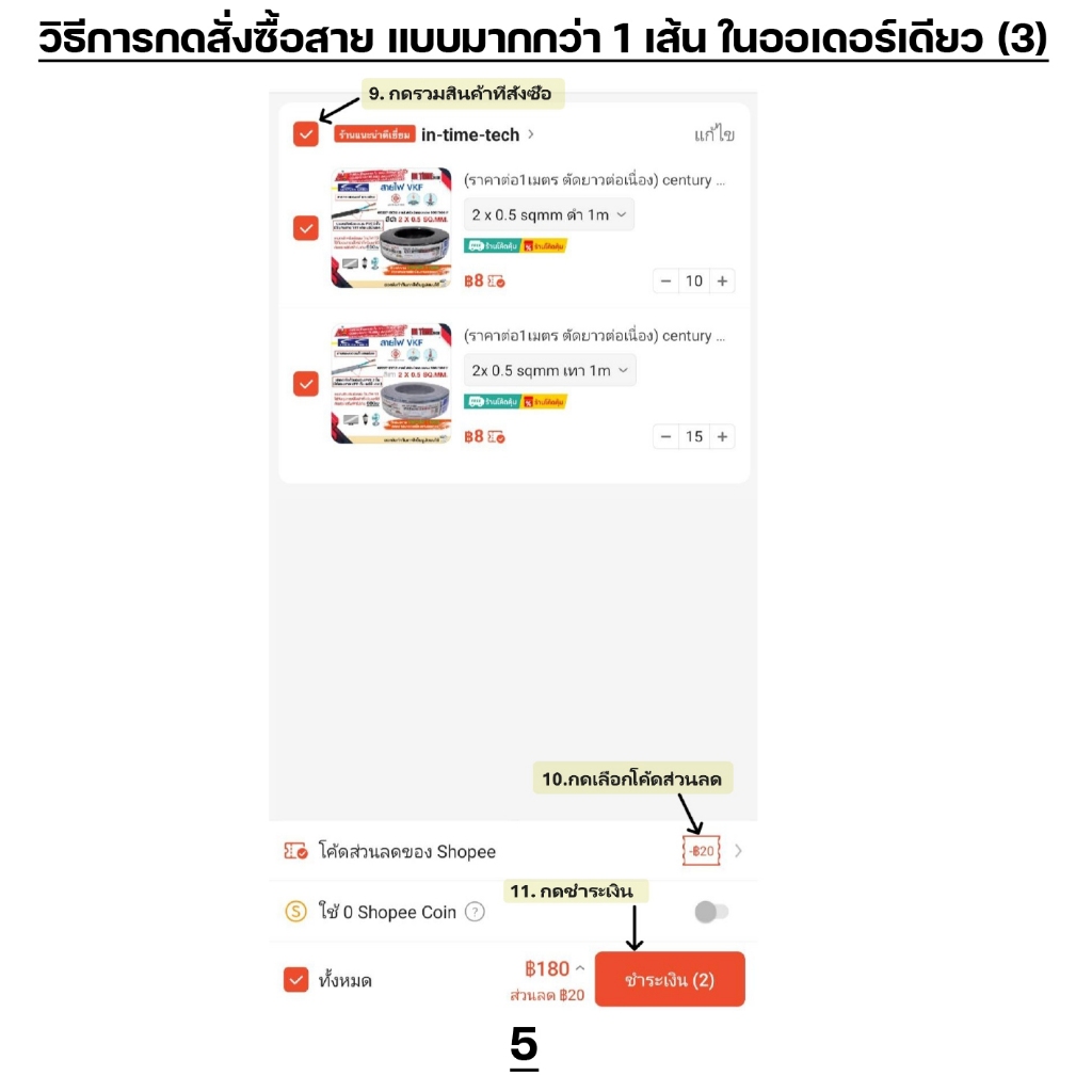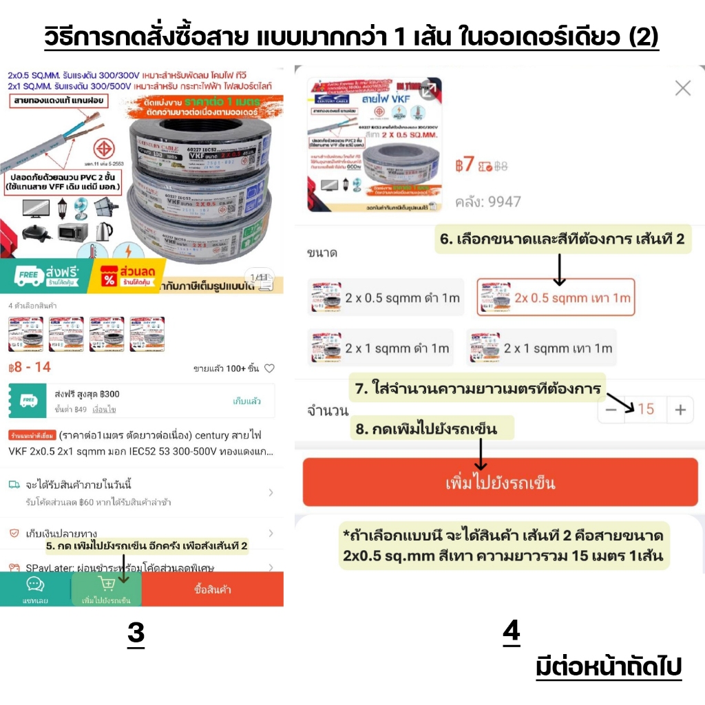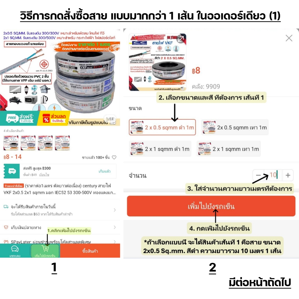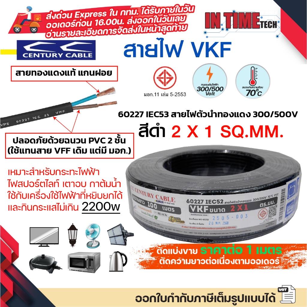 (ราคาต่อ1เมตร ตัดยาวต่อเนื่อง) century สายไฟ VKF 2x0.5 2x1 sqmm มอก IEC52 53 300-500V ทองแดงแกนฝอย หุ้ม PVC 2 ชั้น ใช้แท