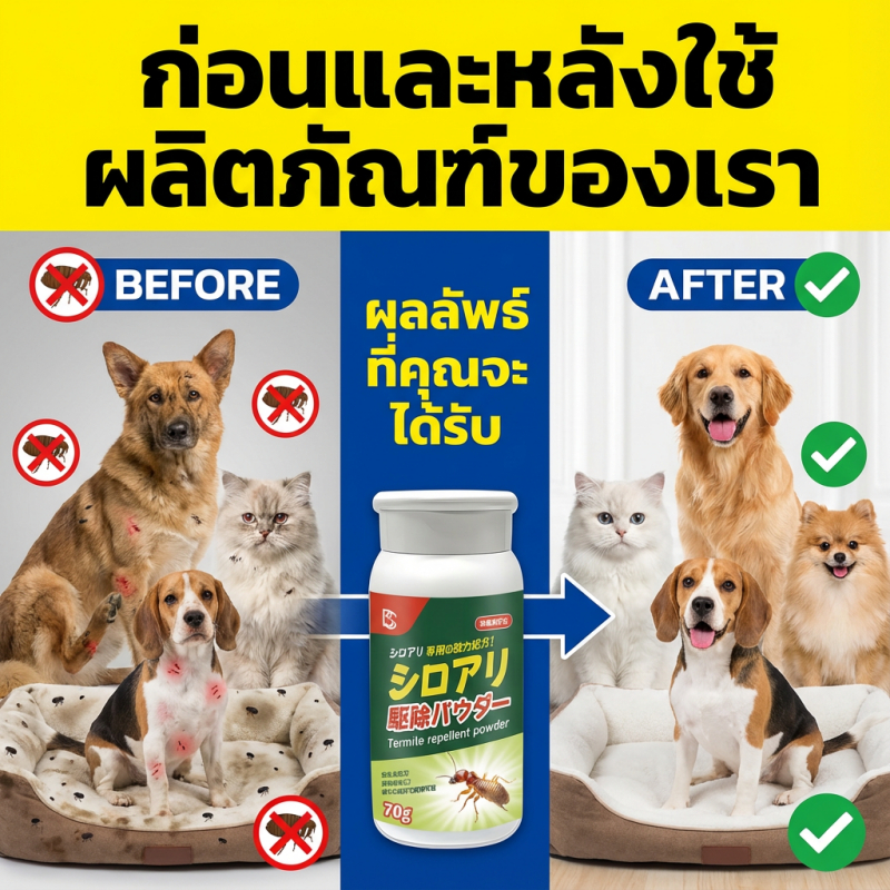 ผงทศกัณฑ์กำจัดเห็บหมัด แป้งผงกำจัดเห็บหมัด ผงกำจัดเห็บหมัด สำหรับน้องหมาและน้องแมว กำจัดตัวเบียน เช่น เห็บ หมัด