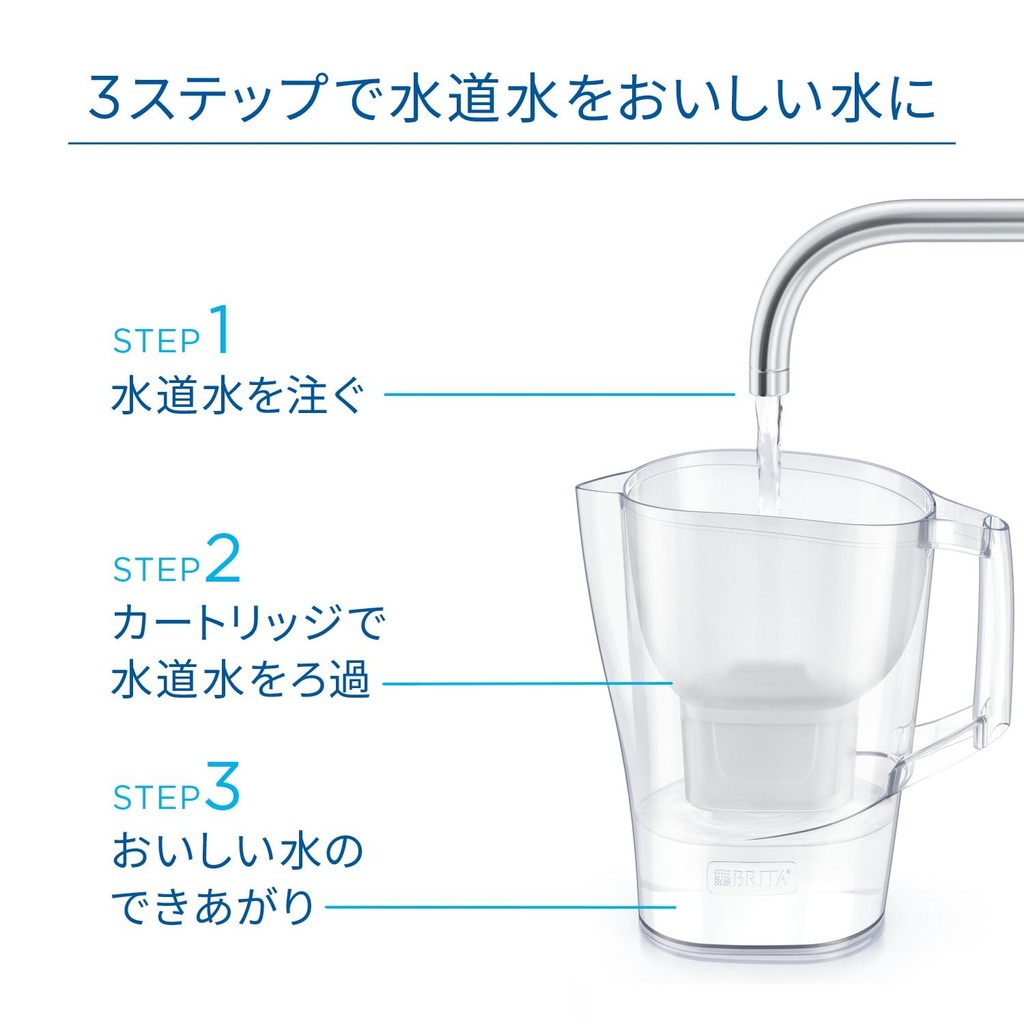 BRITA Water Filter Pitcher - PFOS/PFOA Tested, 1.75L Filtration Capacity (Total 3.5L) - Includes Cartridge, with Optional Accessories- Japan Direct -