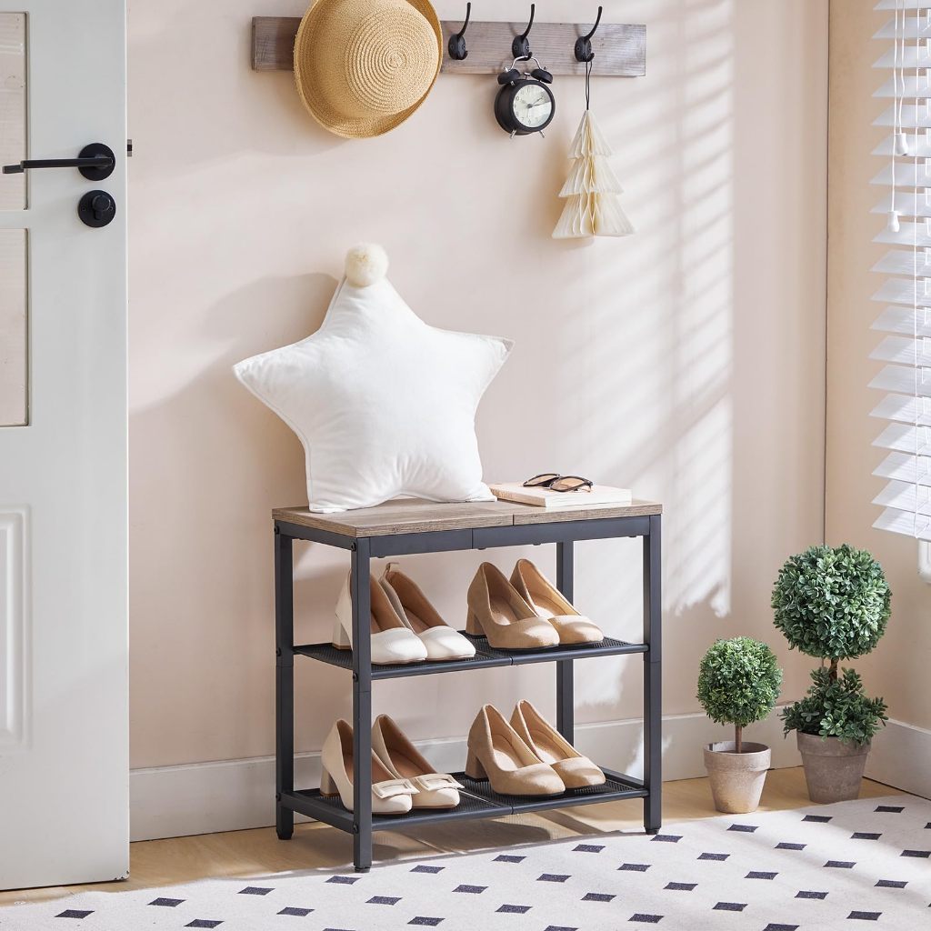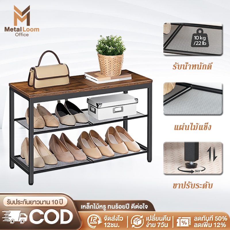 MetalLoom ชั่นวางรองเท้า ชั้นวาง รองเท้า พร้อมโครงเหล็กคาร์บอน ไม้แท้ เก็บรองเท้าได้สูงสุด 60 คู่ หยิบใช้สะดวก