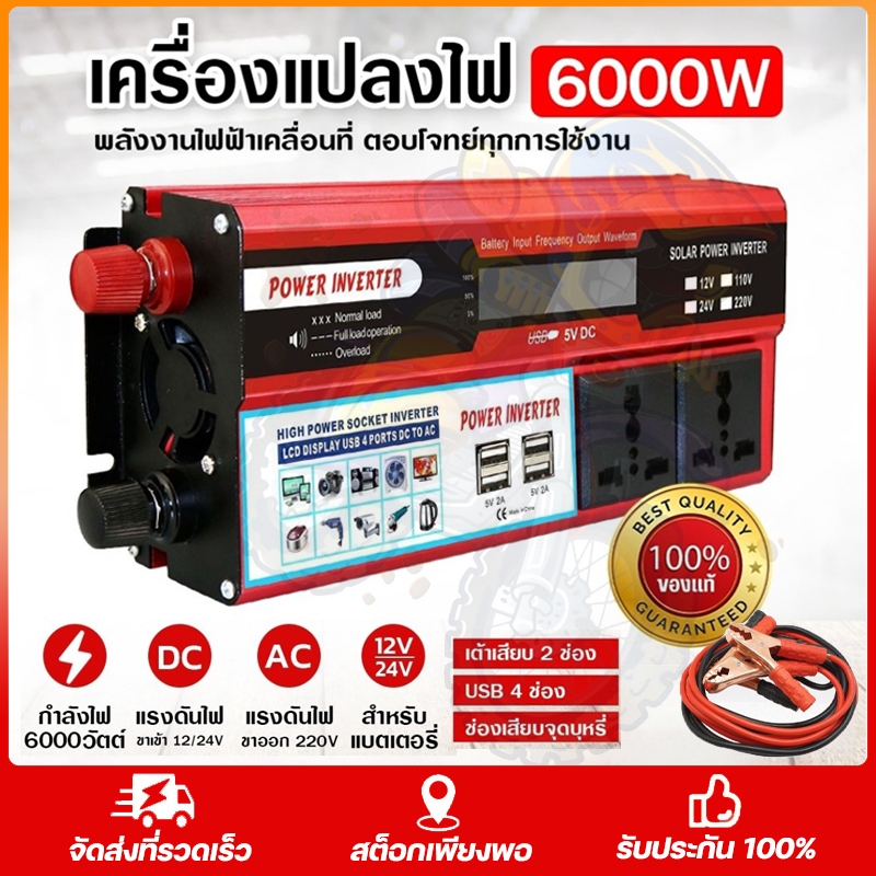 ส่งจากกรุงเทพ อินเวอร์เตอร์ 6000W inverter pure sine wave inverter 12v to 220vแปลงไฟ รถยนต์หม้อแปลงไฟ