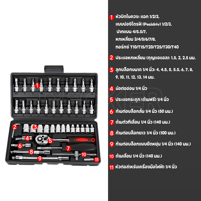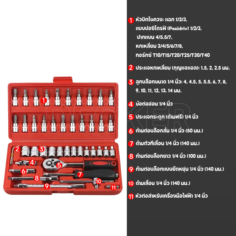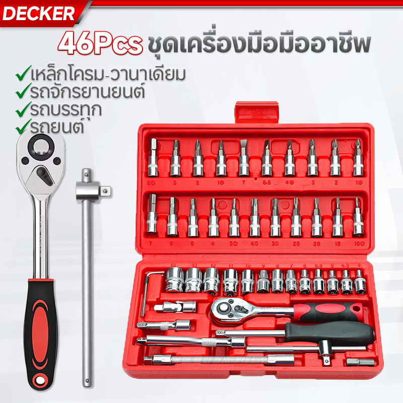 ชุดเครื่องมือ บล็อกชุด ประแจ ชุดบล็อก 46 ชิ้น ขนาด 1/4 Socket Set ชุดเครื่องมือช่าง ชุดประแจซ่อมรถ