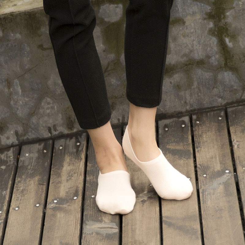 【ผ้าฝ้ายระบายอากาศดี】ถุงเท้าเรือสั้นผู้หญิง แบบซ่อนไม่มีรอย สีเนื้อ + สีดำ กันลื่น ผ้าฝ้ายบาง สปริง-ฤดูใบไม้ร่วง