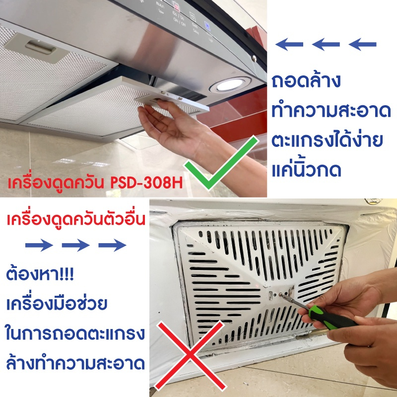 Kashiwa เครื่องดูดควัน คาชิว่า PSD-308H kitchen hood ตัวกรองไขมัน พร้อม ท่อลม หน้ากระจก psd-308h