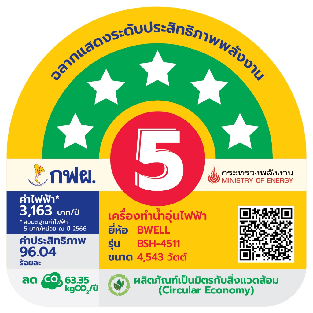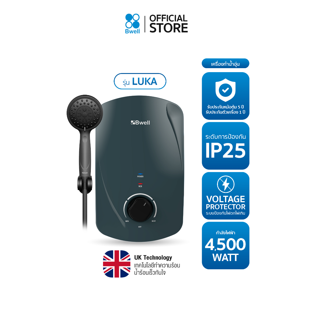 Bwell เครื่องทำน้ำอุ่น Luka ขนาด 4,500 วัตต์ รุ่น BSH-4511