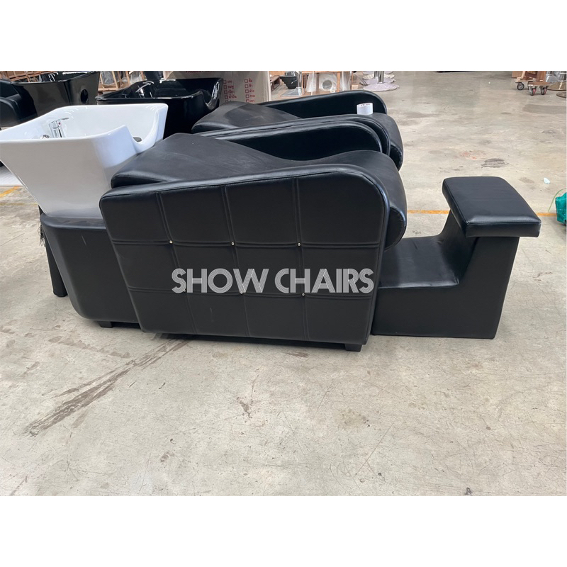 วางเท้าเตียงสระผม หนังดำเงา