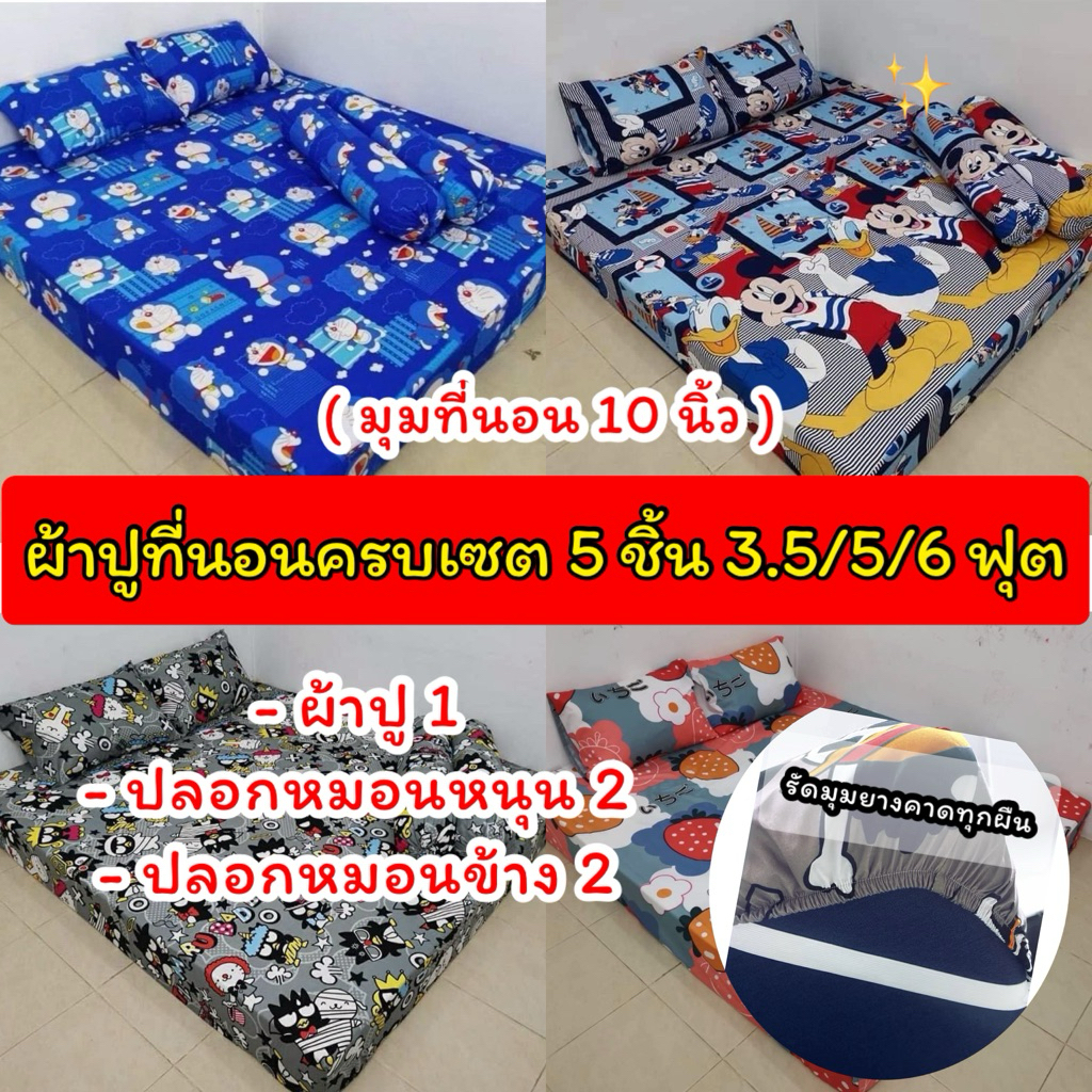ผ้าปูที่นอนครบเซ็ต 3.5/5/6 💥 (5 ชิ้น) ผ้าคอลตอนนิ่ม มุมสูง 10 นิ้ว ยางคาดรัดมุมทุกผืน