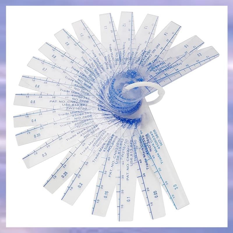 เกจวัดฟีลเลอร์พลาสติก 0.05 มม. ถึง 3 มม. เครื่องมือวัดช่องว่างเมตริก 21 ใบ