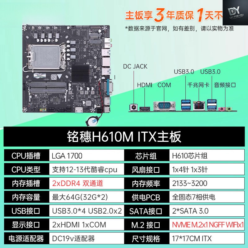 Dfy Mini-ITX ddr4 H310 H510 H610 H61 H81 ITX เมนบอร์ด GA + HDMI 17x17 ซม.อุตสาหกรรมควบคุม All-in-One เครื่อง/โน้ตบุ๊ค